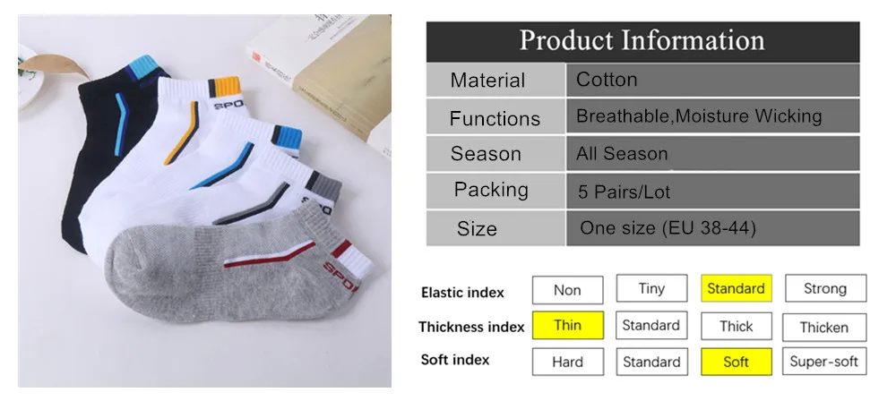 Носки мужские короткие из дышащего сетчатого материала, 5 пар