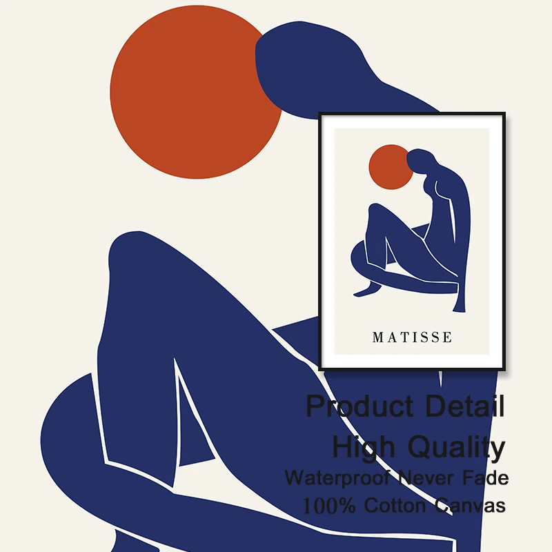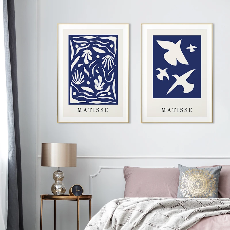 Абстрактный синий минималистичный настенный плакат Matisse, картина...