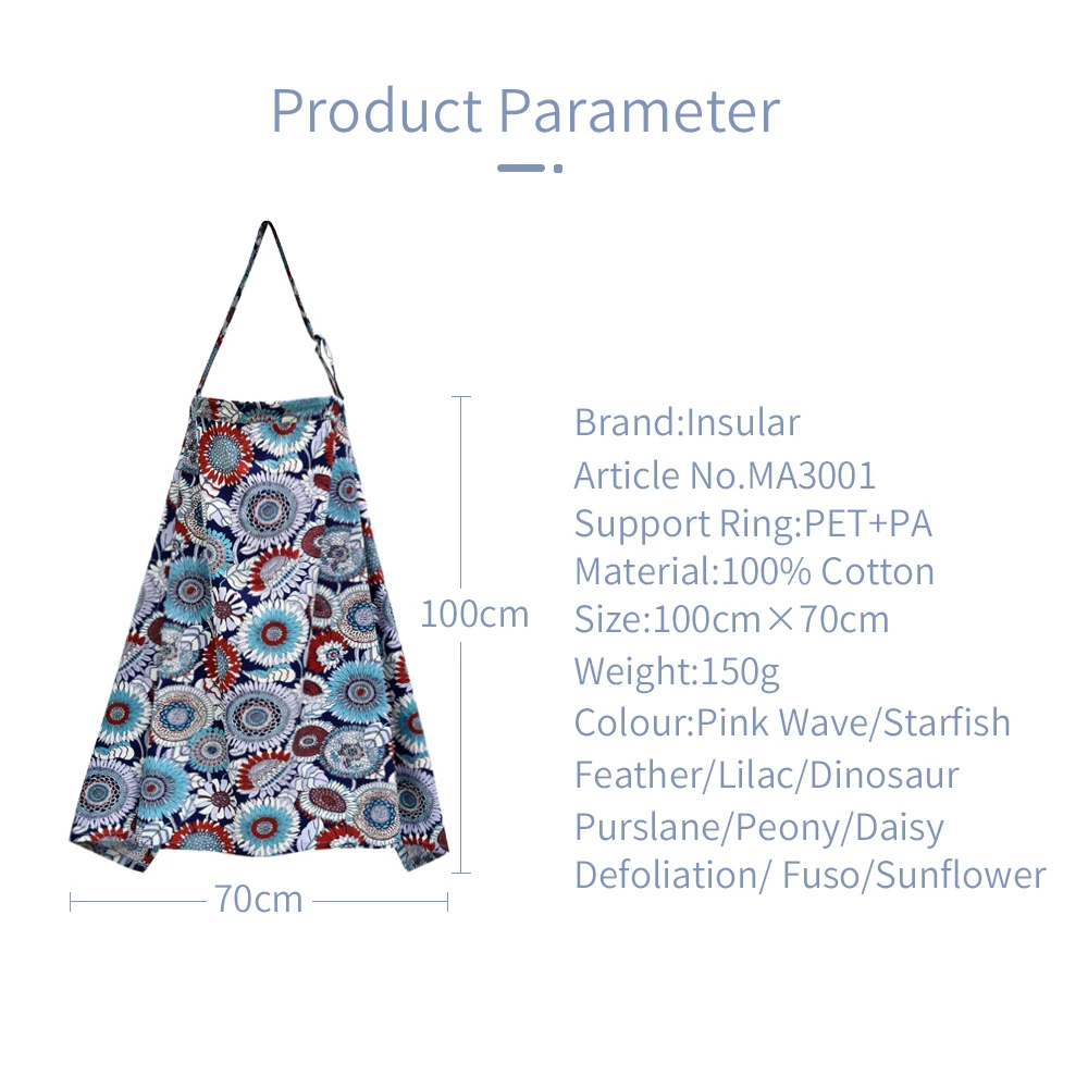 Накидка для кормления грудью Insular, дышащая хлопковая муслиновая ткань для младенцев, большой накидка для кормления, фартук 70*100 см