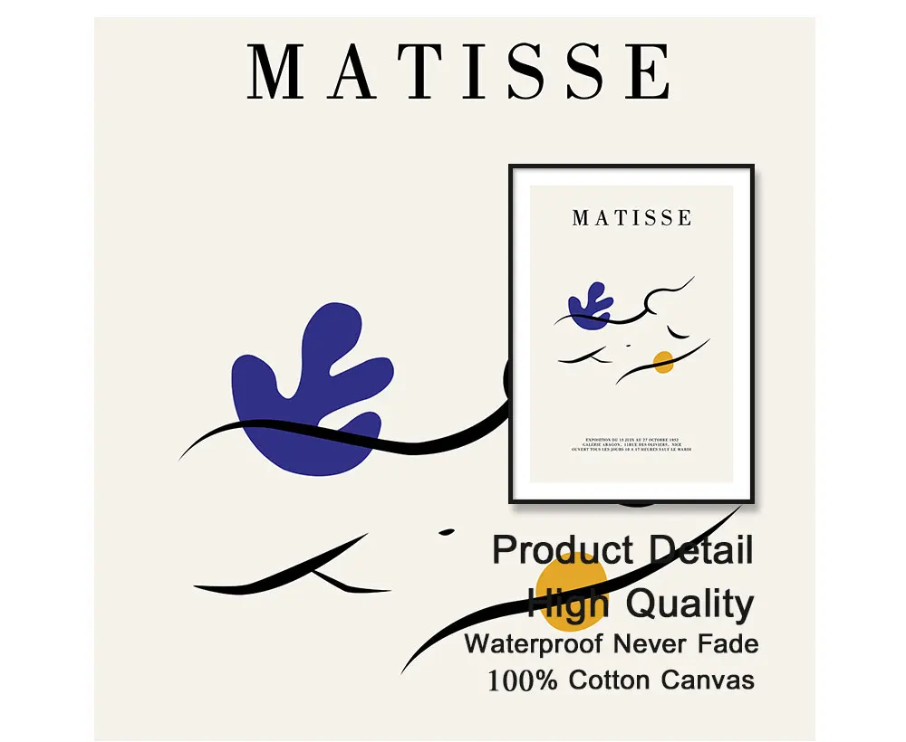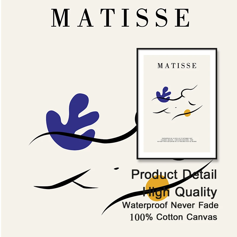 Абстрактный синий минималистичный настенный плакат Matisse, картина...