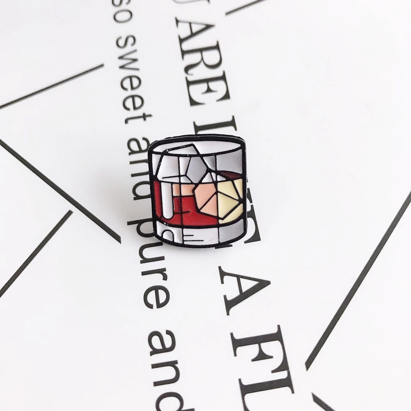 Эмалированная брошь на рюкзак для виски с кубиком льда