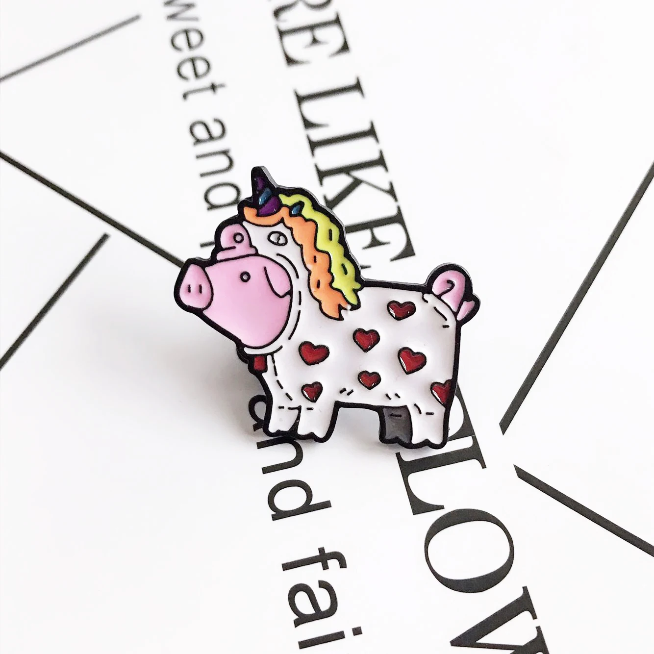 Мультяшные животные Броши пони Единорог свинка эмалевые булавки пре...