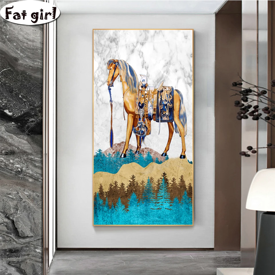 Полная квадратная/круглая алмазная живопись, современная простота 5D, сделай сам, лошадь, алмазная вышивка, мозаика, декор стен