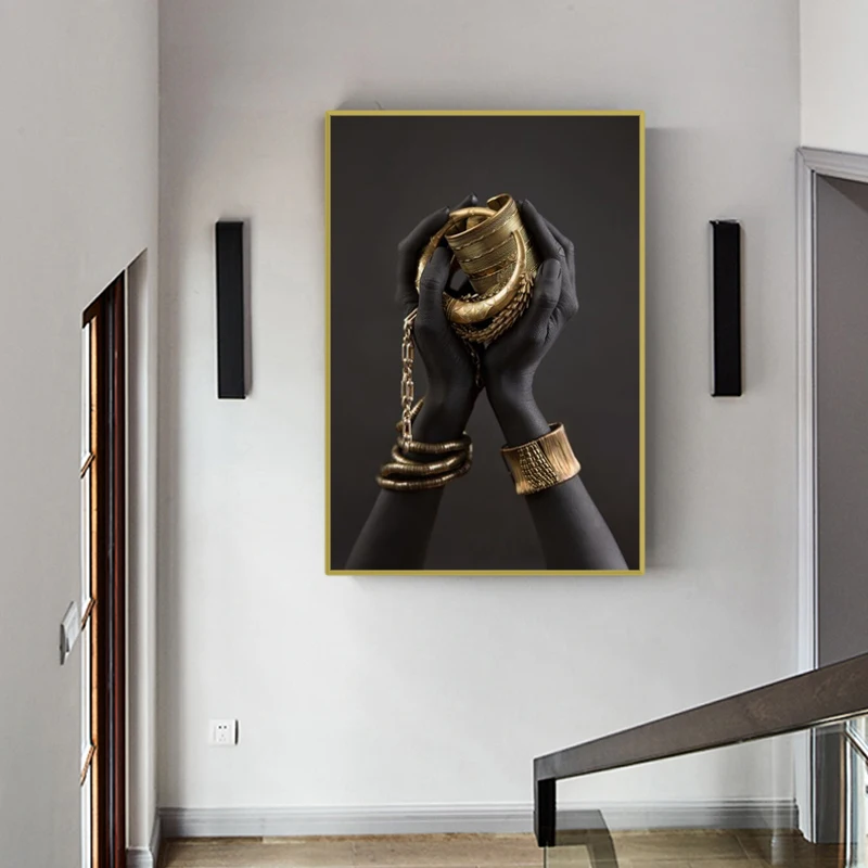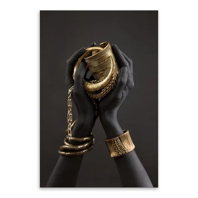 Черная и Золотая рука с золотым браслетом картина маслом на холсте африканская художественные плакаты и принты Настенная картина для гостиной