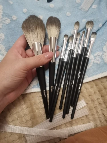Кисти пришли целые в коробочке. Они синтетические, не прям очень хорошая синтетика, но за такую цену не плохо. Так же эти кисти спасают их формы. Во время мытья начал вылезать ворс из большой кисти ....и я не знаю закончит он вылезать или нет. Есть ощущение что пока она совсем лысой с одного бока не станет, вылезать не закончит. Но в целом неплохо, в использовании удобные.