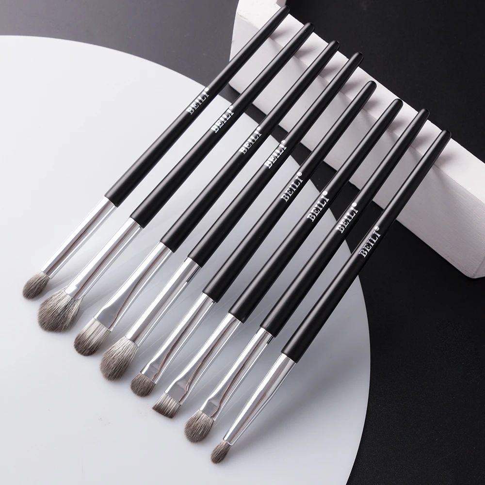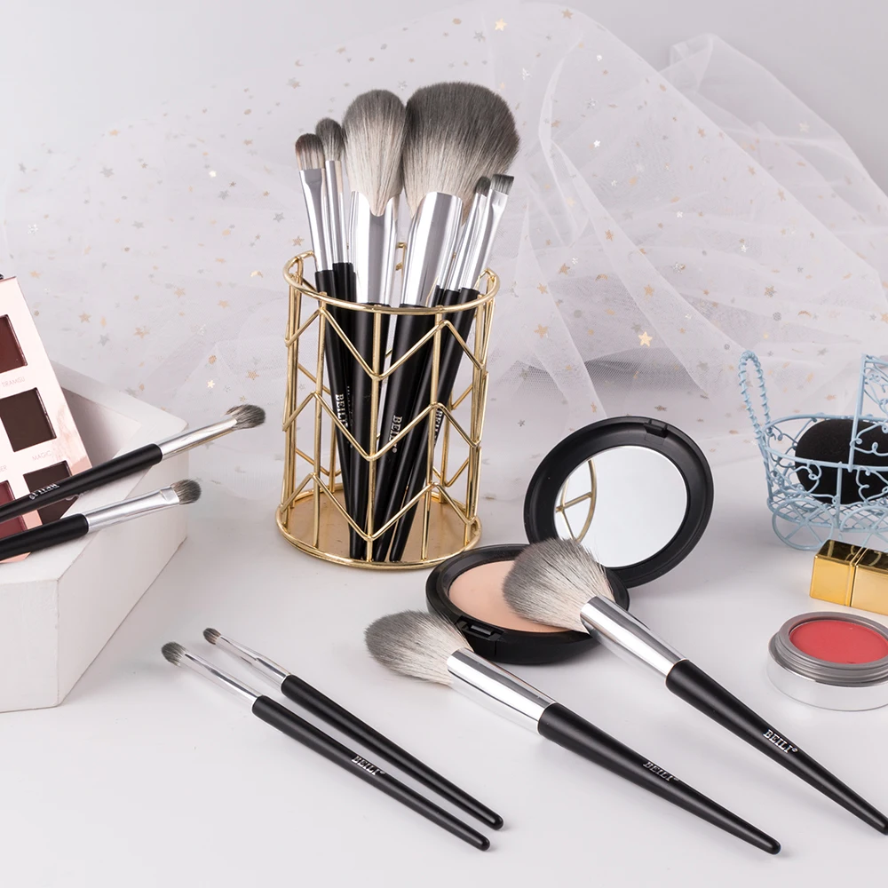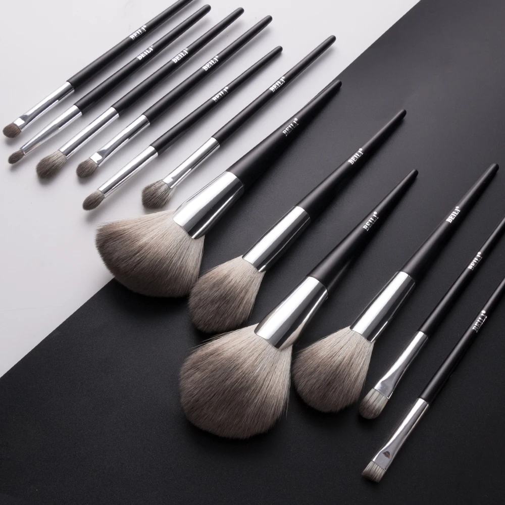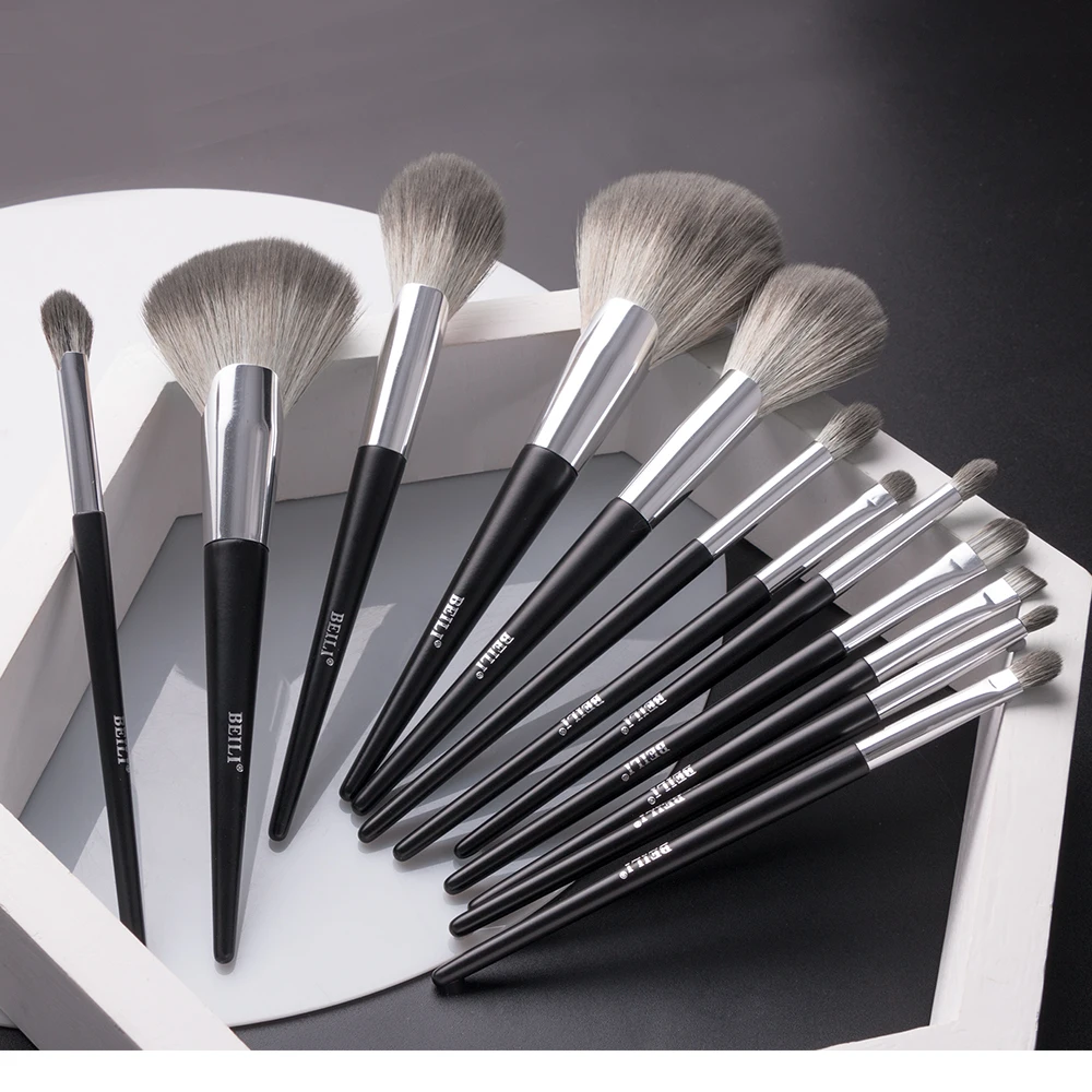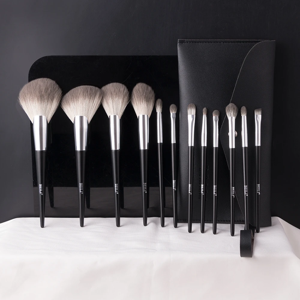 Набор синтетических кистей для макияжа BEILI, 12 шт., черного цвета, Веерная пудра, Тональная основа, тени для век, кисти для макияжа с чехлом
