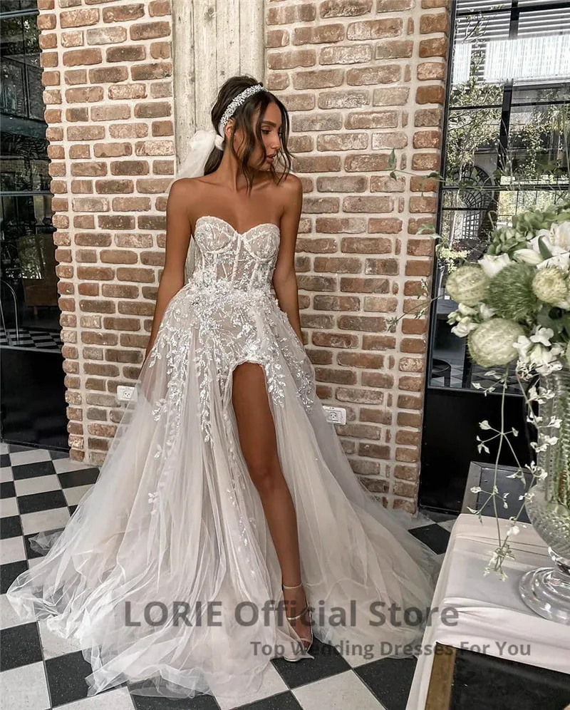 Сексуальные пляжные свадебные платья LORIE для невесты, элегантное кружевное женское платье без бретелек, без рукавов, с высоким разрезом, платья принцессы 2021
