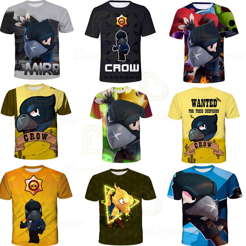 Футболка с рисунком «Ворона» Детская футболка с короткими рукавами и 3D-принтом героев мультфильма «звезда игры» для мальчиков, топы, футболки, детская одежда
