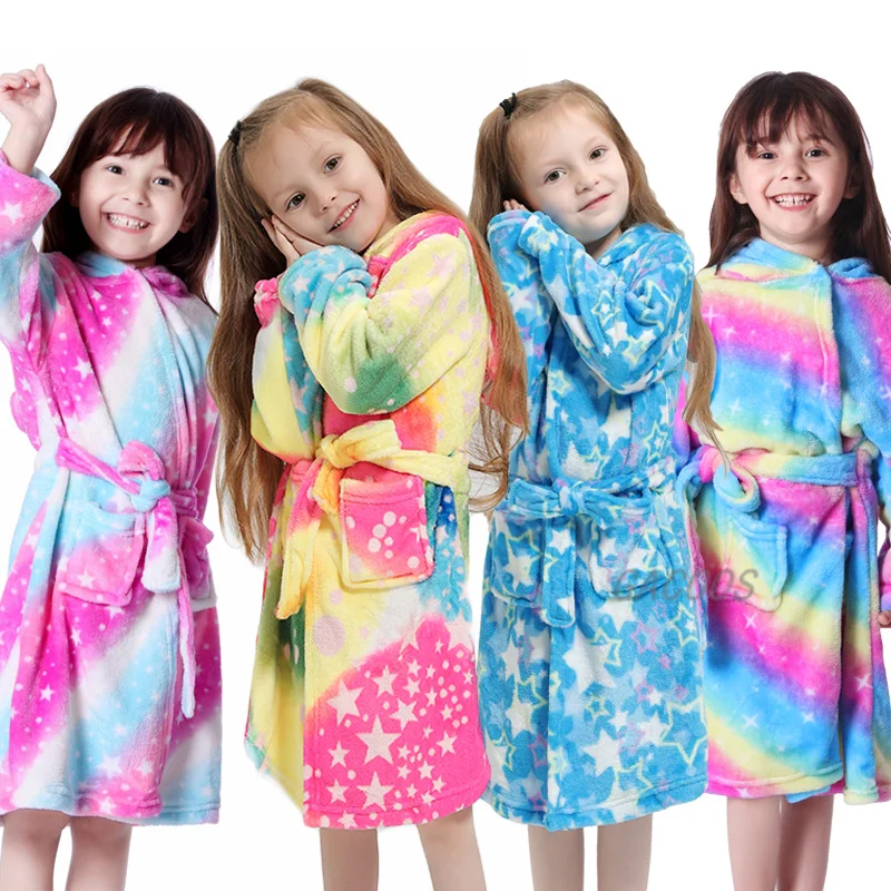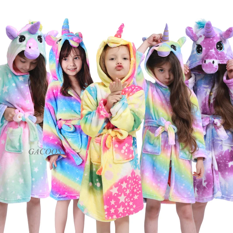 2022 зимний детский халат с единорогом, кигуруми, Детский костюм, банный халат, пижама с животными для мальчиков и девочек, халат, детская одежда для сна
