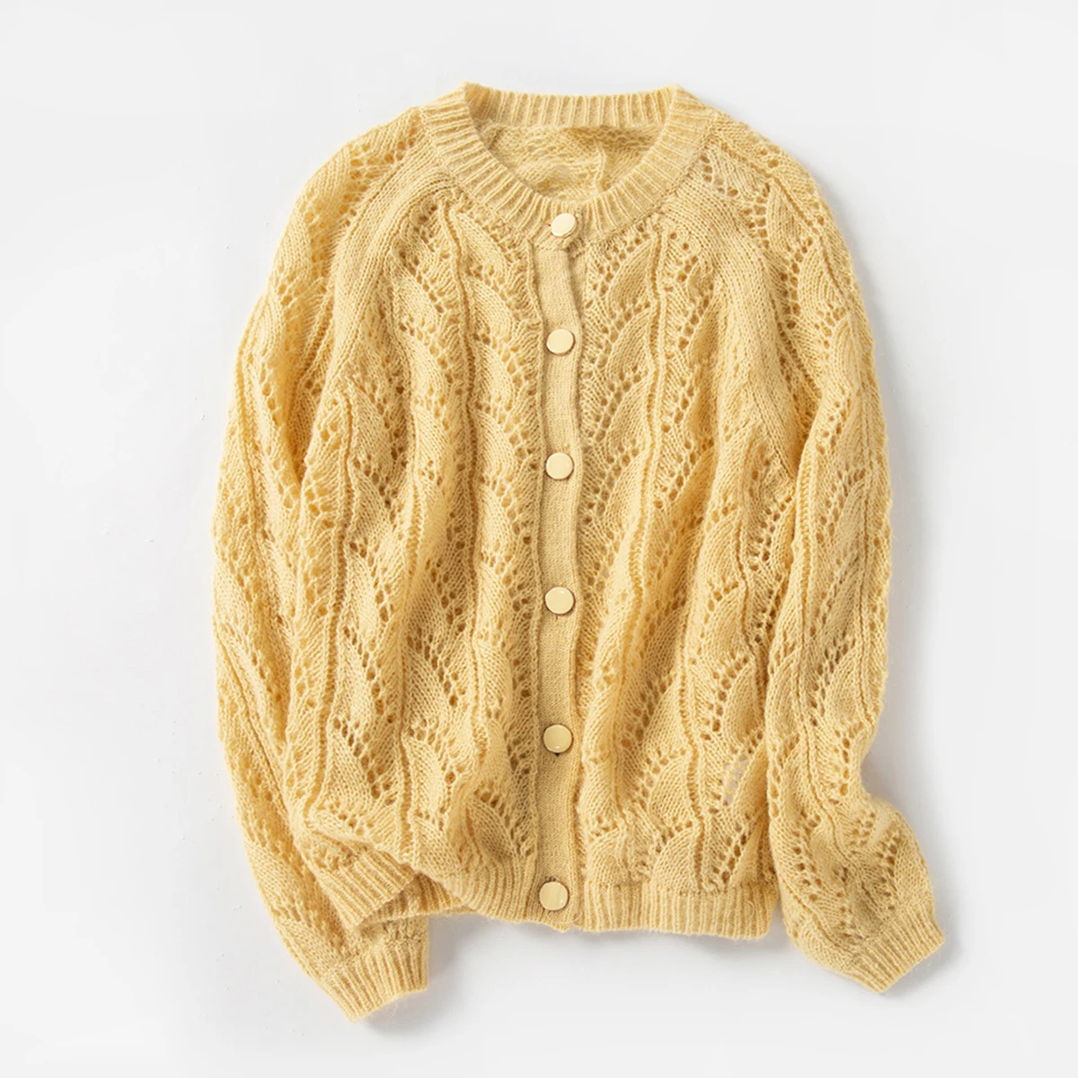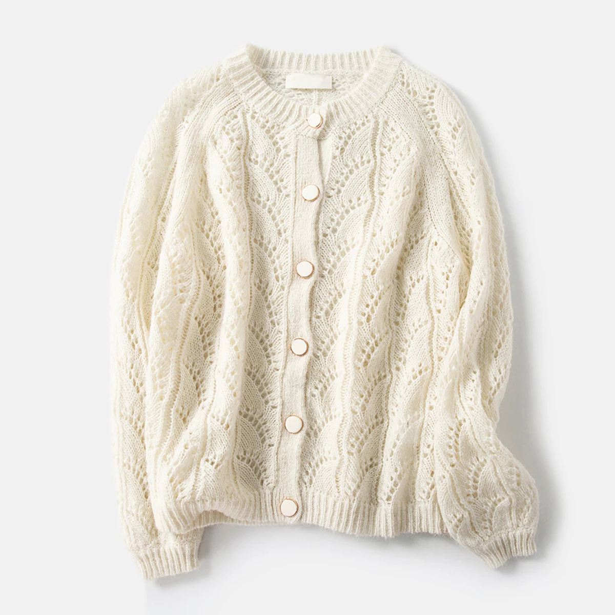 Женский вязаный джемпер шикарный, осенне-зимний мохеровый Повседневный винтажный кардиган с рукавами-фонариками и круглым вырезом, 2021