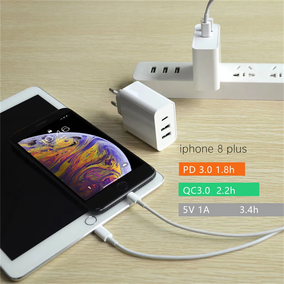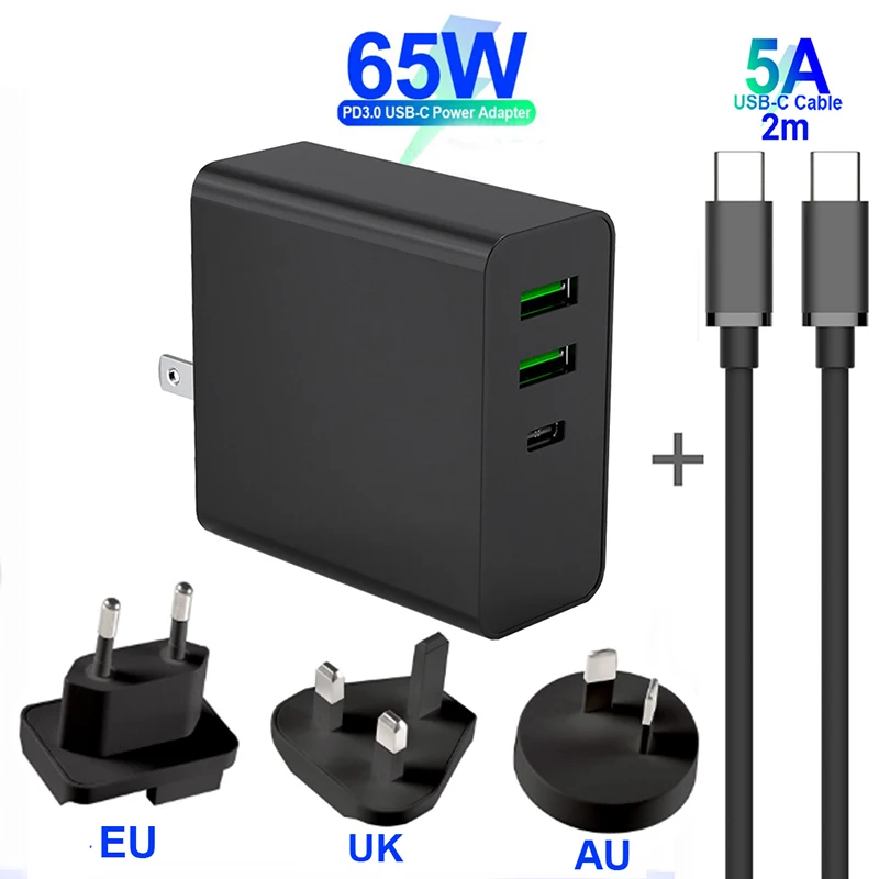 Адаптер питания, 3 порта, 65 Вт, Type-C, 1 порт PD, зарядное устройство для ноутбуков MacBook Pro Air iPad Pro, 2 порта USB для Samsung iPhone