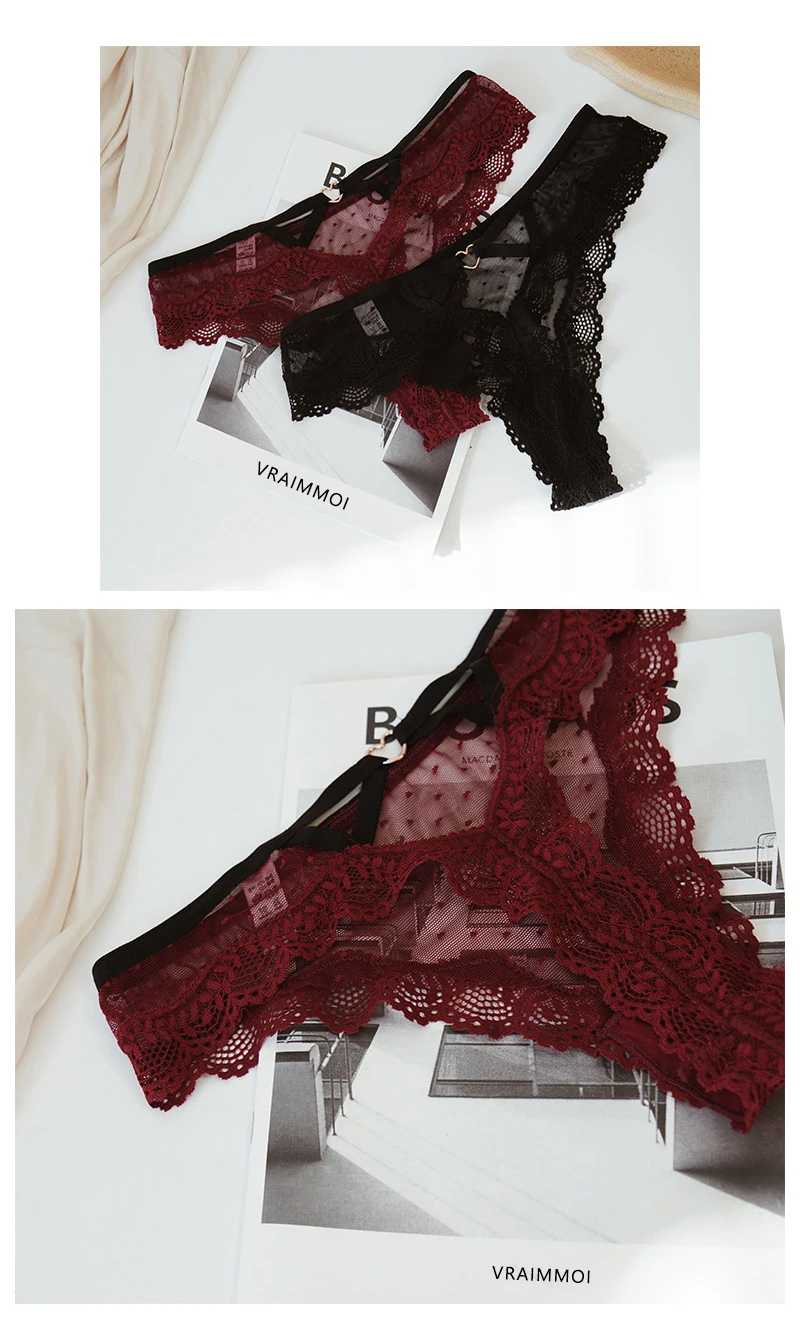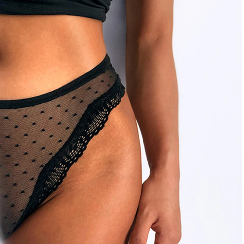 Женские кружевные трусики-стринги, прозрачные, с низкой талией, с вырезами
