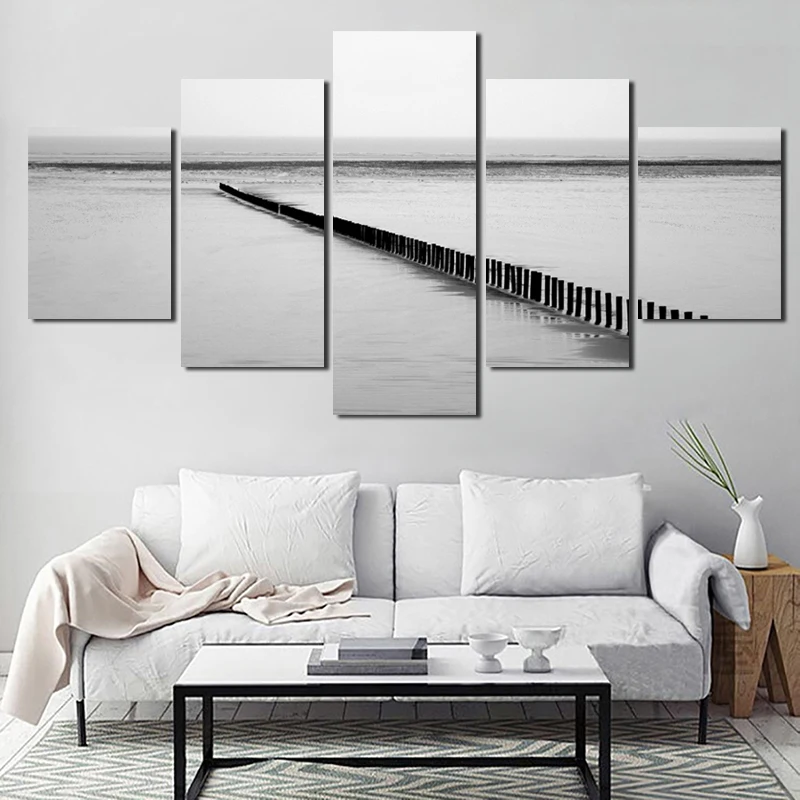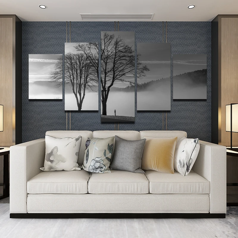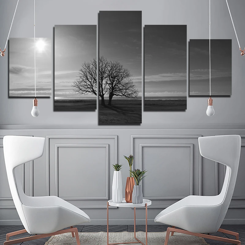 5 шт., настенные картины с изображением пейзажа, черно-белого цвета