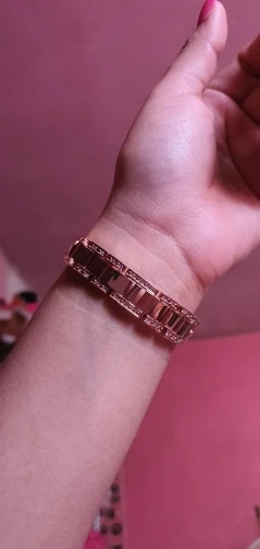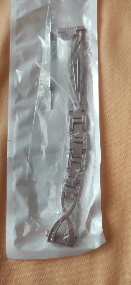 Не самая быстрая доставка, но по-прежнему относительно быстрая. Товар прибыл уже с некоторыми царапинами и сохранил больше царапин с помощью удаления слоя краски. Цвет почти соответствует часам. Камни на месте. Не кажется, что сталь как заявлено, но пластик. Выглядит дешево на часах, но все равно хороший браслет для ношения. Легко установить и изменить размер. Инструменты не требуются. За цену, хотя качество может быть немного лучше.