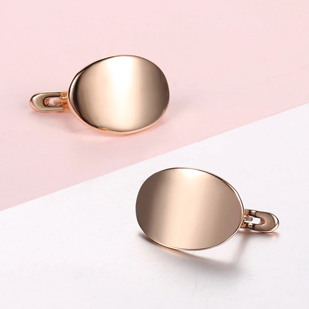 Женские серьги-гвоздики из розового золота 585 пробы, модные гладкие простые элегантные Геометрические круглые серьги, новинка 2021, LGE307