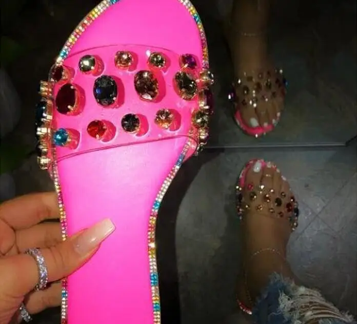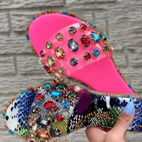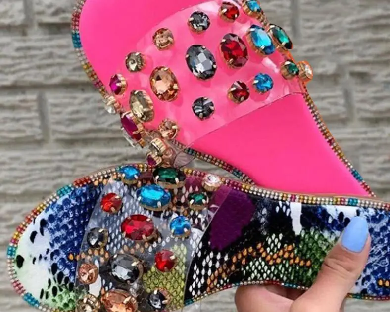Шлепанцы с цветными камнями, с бусинами, Нескользящие, для лета, 2021
