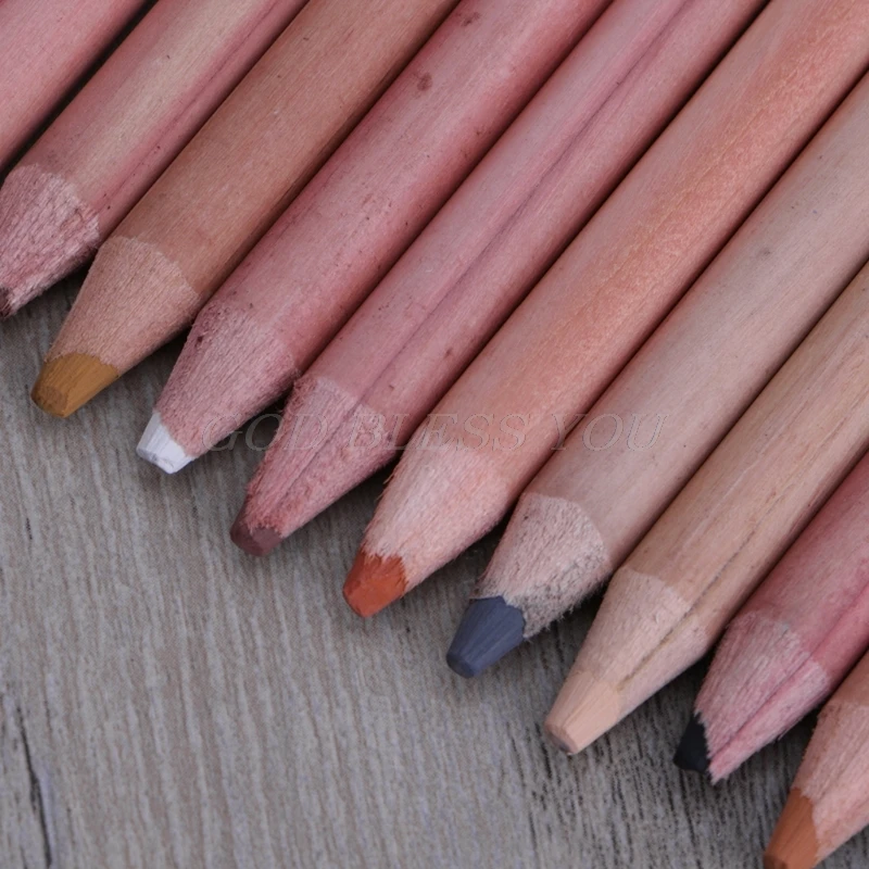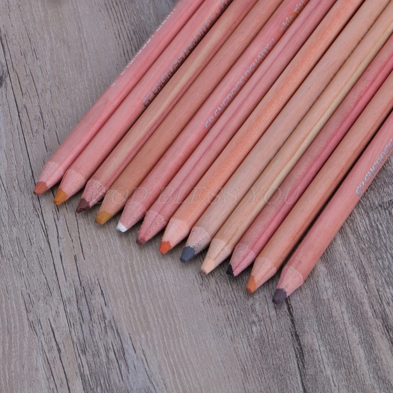 12 шт Профессиональные мягкие пастельные карандаши Дерево Кожа оттенок пастельные цветные карандаши Прямая поставка