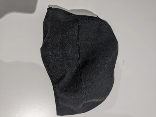 Очень плотная, но при этом лёгкая шапка. Не продуваемая. Самая близкая ассоциация: шапка для плавания с флисом. Очень плотно сидит и ещё звуки блокирует.