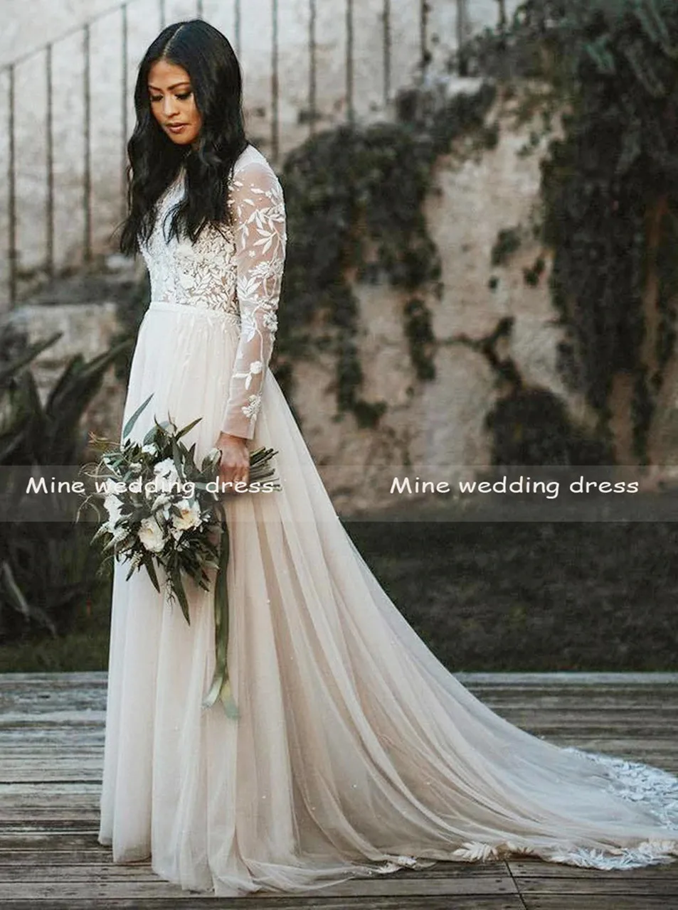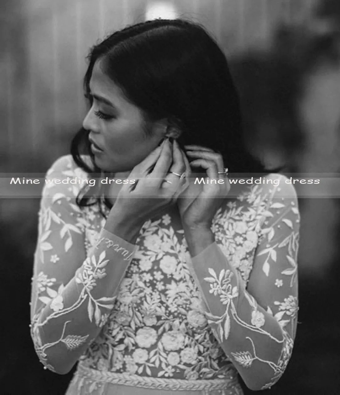 Женское ТРАПЕЦИЕВИДНОЕ ПЛАТЬЕ It's yiiya, белое пляжное платье из фатина с длинными рукавами, высоким воротом и аппликацией в виде цветов на лето 2020
