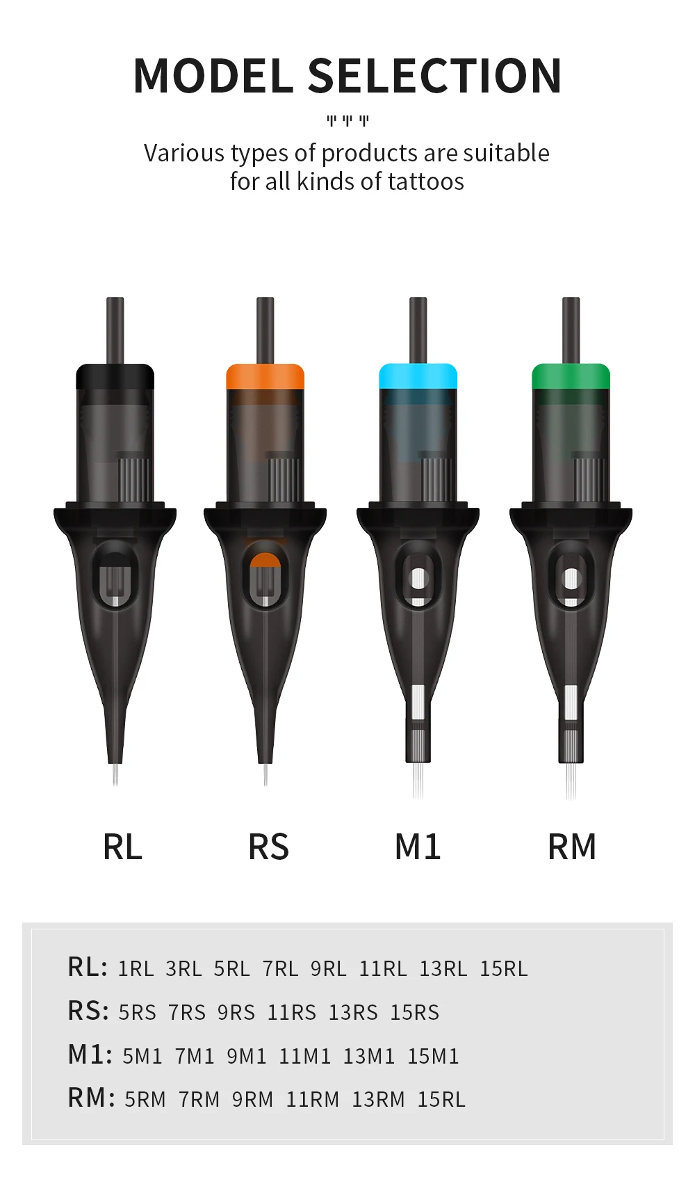 Иглы одноразовые для татуировочной машинки RL, RS, M1, 20 шт.