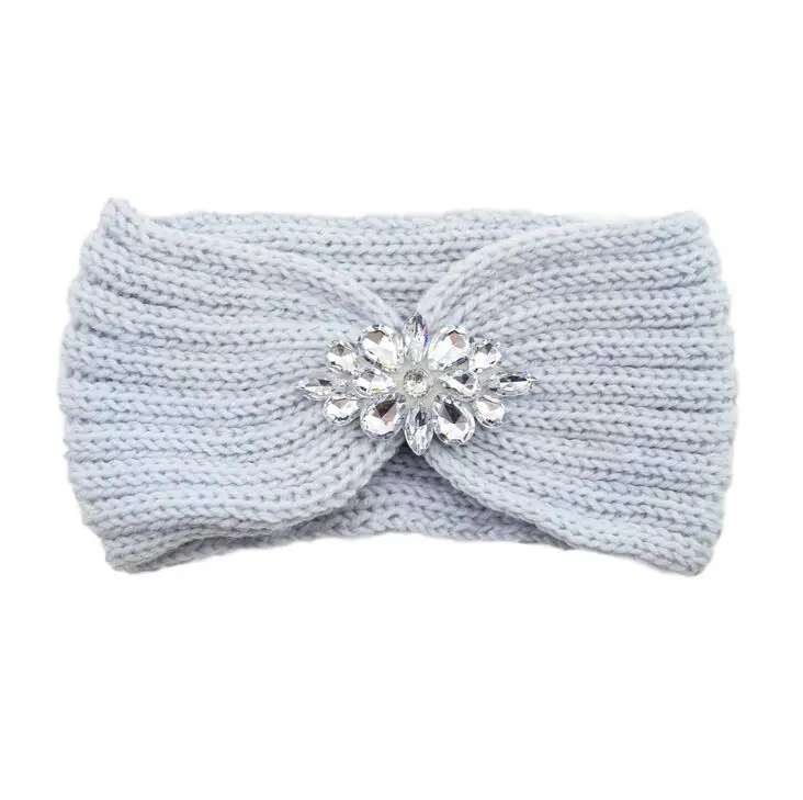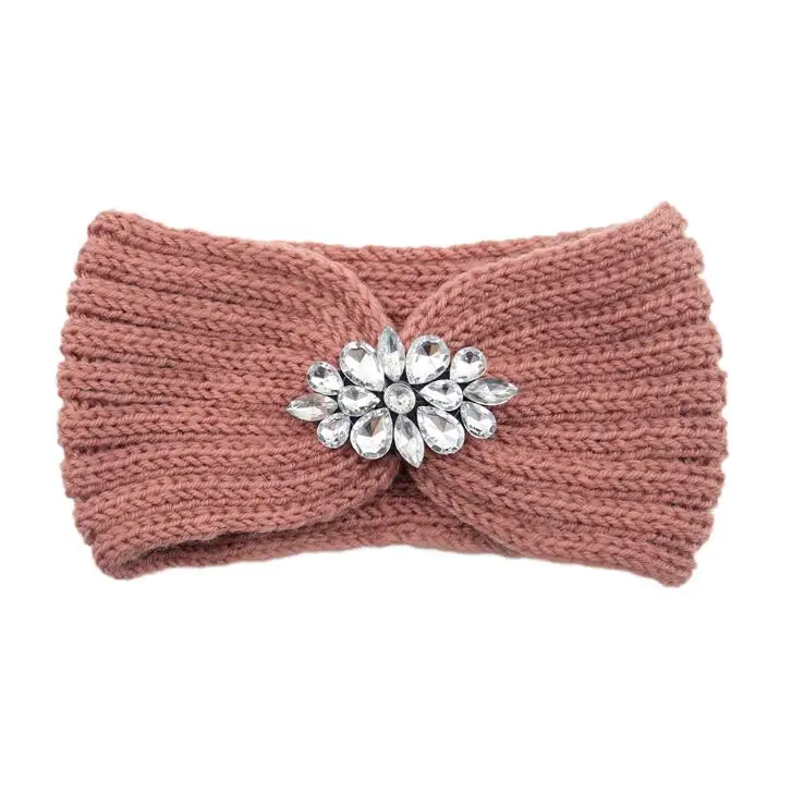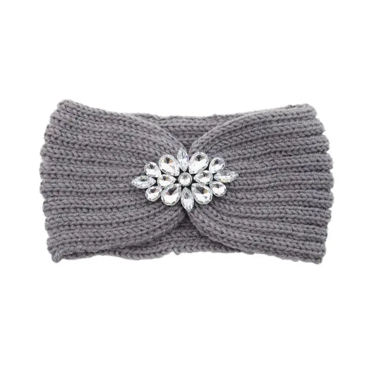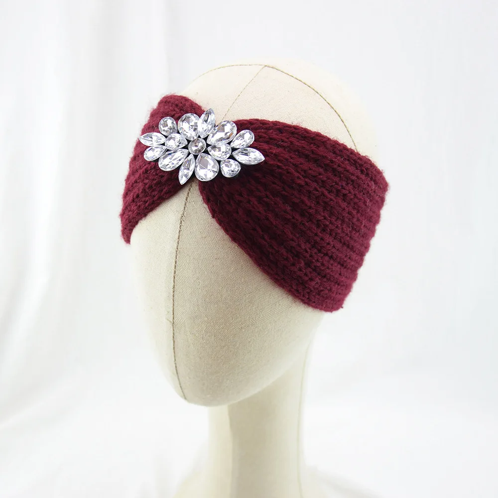 Модная цветная Зимняя повязка на голову с прозрачными кристаллами и цветами, эластичная повязка для волос, тёплый вязаный стразы, повязка на голову для женщин и девочек