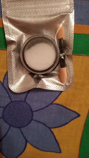 Не ожидала, что какие-то фигнюшки за 3 копейки придут за 2 недели в Воронеж, да ещё и трек отслеживался по России. Пудра как на картинке. Блестючая, красивучая, держится нормально. Средней зернистости (если кто-то хочет использовать в лак, то это не микрошимер, крупнее гораздо).