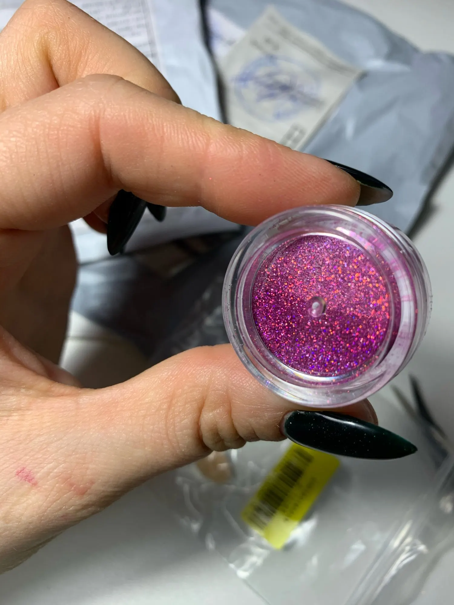 Хорошое блестки. Толко не тот цвет мне пришел что я выбрала. Тоже хороший. Но у меня уже есть. Мелкий помол. Но ошибочка продавца вышла