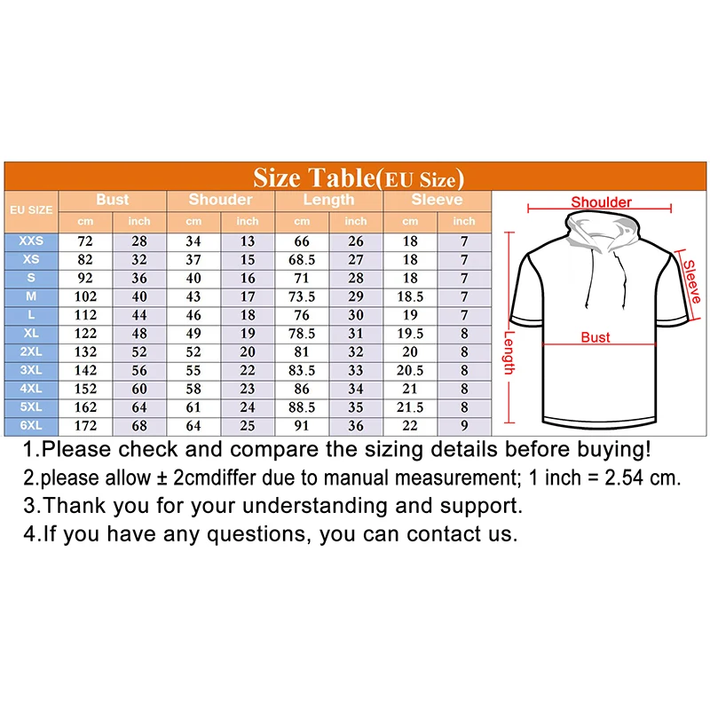 3D Hoodies t-shirts EU SizeXXS XS S M L XL XXL XXXL 4XL 5XL 6XL