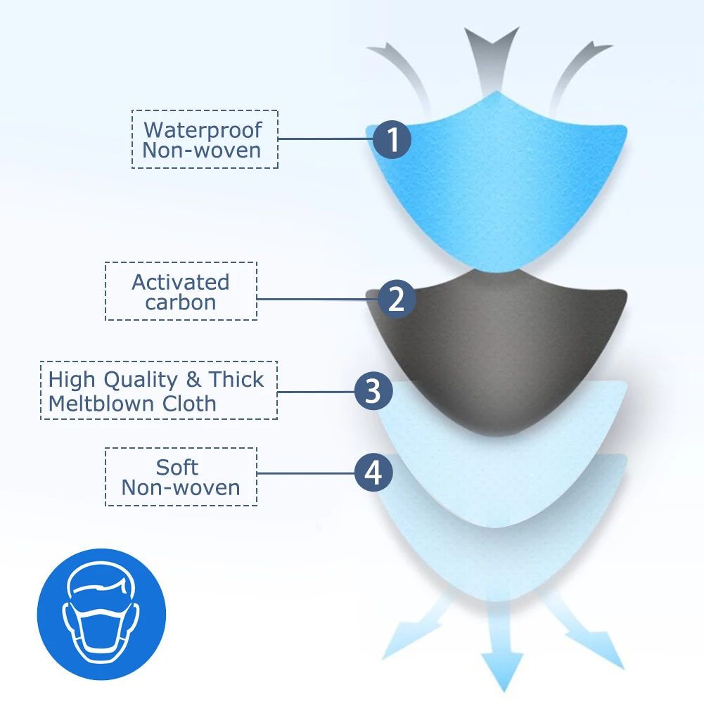 Одноразовая Защитная маска с активированным углем, 4 слоя фильтра, ...