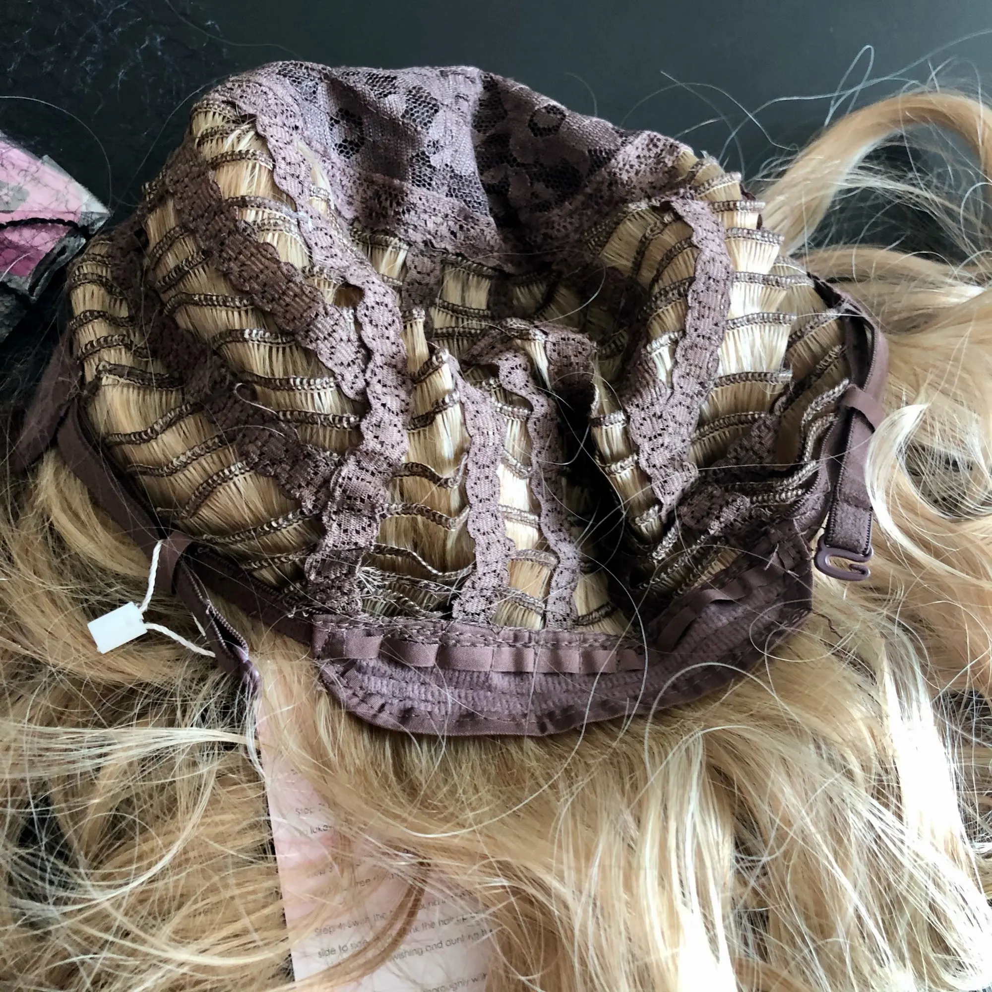 Парик выполнен из синтетического термостойкого волокна длиной 76 см. Волосы красивого золотого оттенка с омбре-переходом, волосы очень густые. Волосы собраны на очень толстую синтетическую нить, которая сплетается в сетку. ⠀ В комплекте идёт сеточка для волос и накладные ресницы. Парик крепится сзади затягивается резинкой и крепится на два крючка. ⠀ Доставка до Омска осуществлялась в течении месяца. Посылочка пришла в обычном почтовом пакете + индивидуальный зип-пакет. При транспортировке ничего не пострадало.