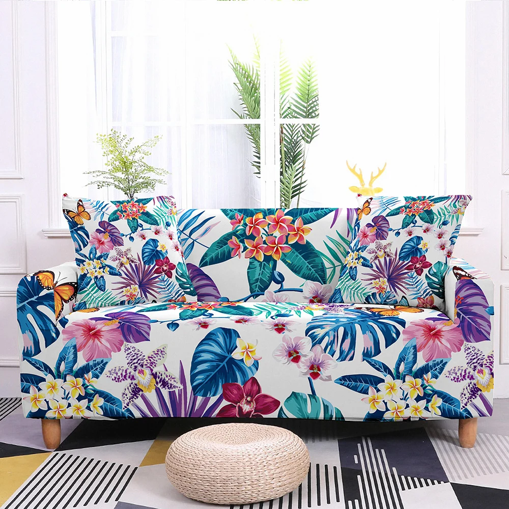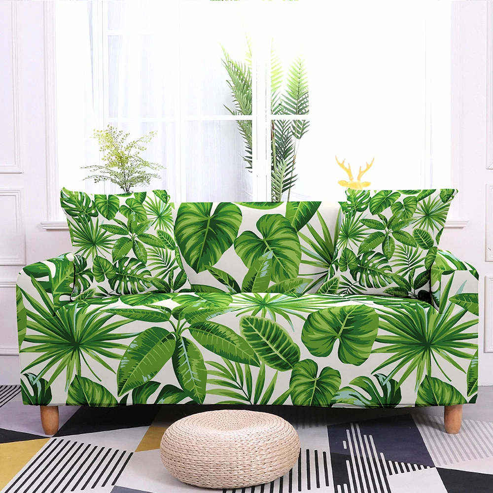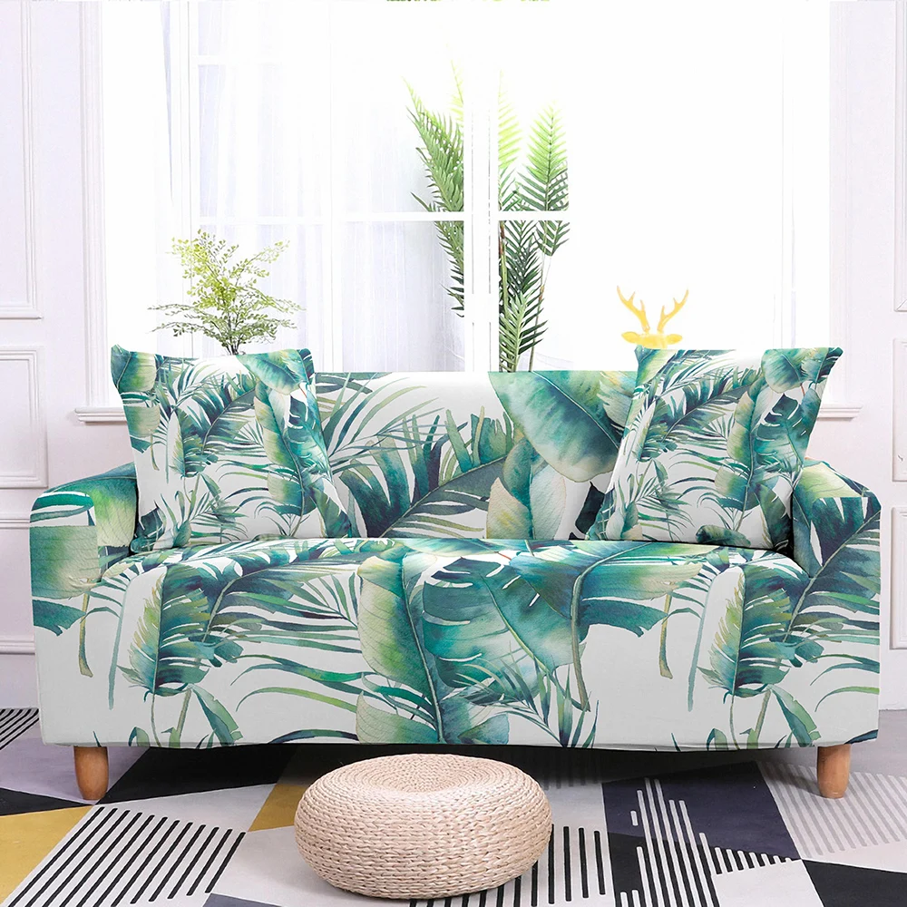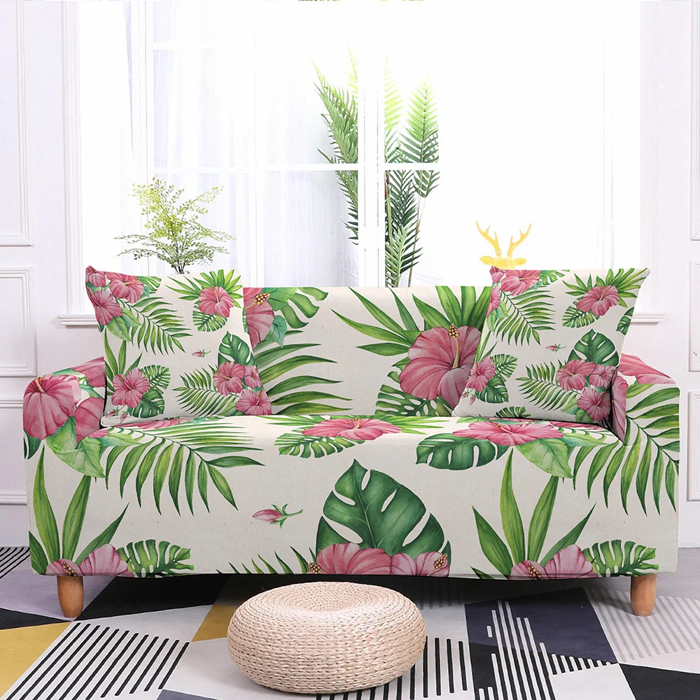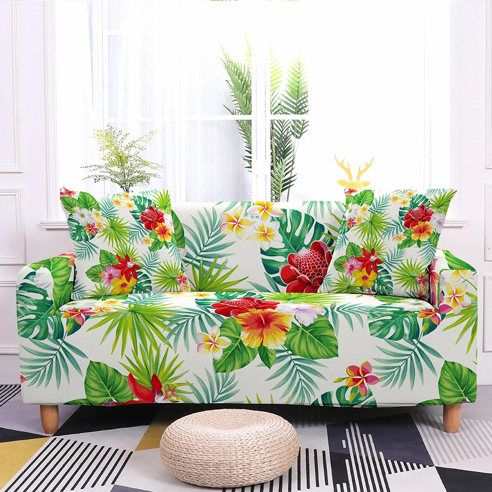 Чехол для дивана с тропическими листьямицветами, эластичный чехол для дивана, покрывало для углового дивана, покрывало для дивана в гостиной