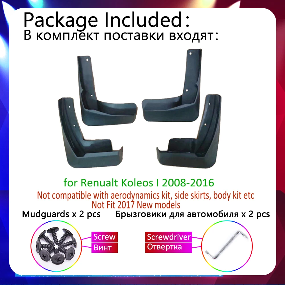 Автомобильное крыло брызговик для Renault Koleos 1 2008 2016 2009 2010 2011 2012 2015 Брызговики автомобильные аксессуары наклейки