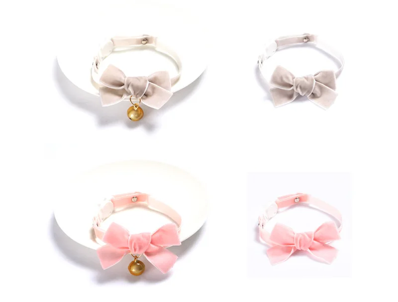 Ошейник для домашних животных, кошки, аксессуары, милый маленький колокольчик с бантом, вельветовые товары для собак, мультяшное розовое украшение