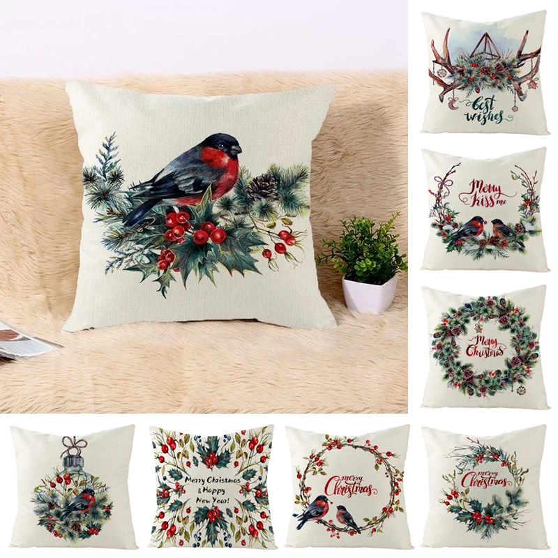 Рождественская наволочка 45*45, наволочки для диванных подушек, наволочки с принтом птиц, хлопковые льняные наволочки, домашний декор
