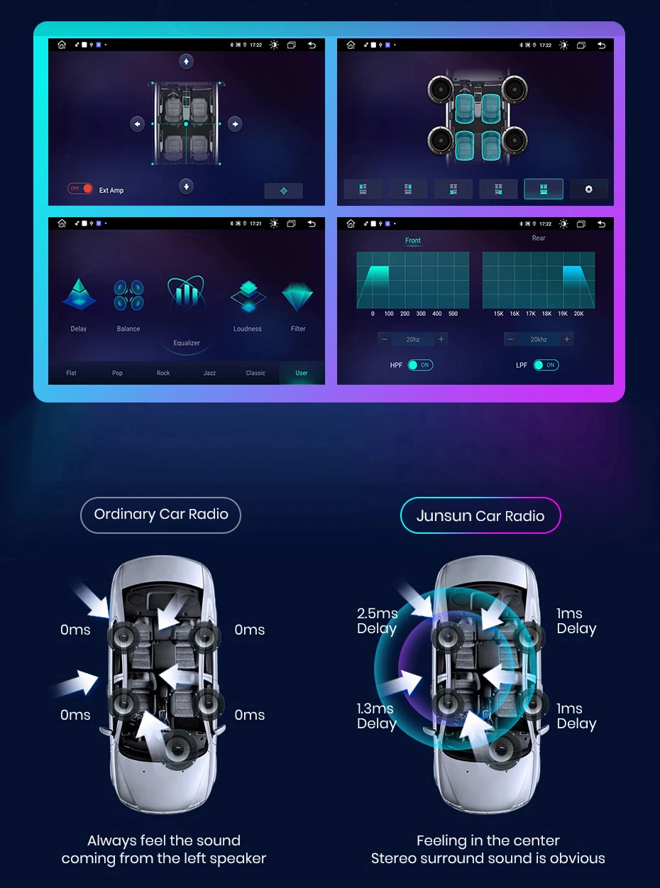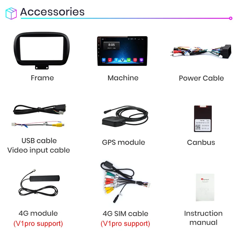 > Basic functions: Android 10.0 + 9 inch IPS Screen + Quad Core 1.2GHZ (Eight core 1.8GHZ optional)+ DDR3 1GB Flash (2GB/4GB optional) + 16 GB Memory (32GB/64GB optional) + WIFI (4G Network optional)+ Mirror link+ Steering Wheel Control + RDS/DSP(optional) + steering wheel control > Special functions: 1. PIN to PIN:Junsun radio' power cable is pin to pin, easy to install;2. Built-in Carplay/ Android Auto: V1/V1Pro version supporting, just use your phone cable connect it, stable and easy to use;3. Support Headrest : Only Junsun V1 version support;Optional accessories> AI Voice Control: Only Junsun support the PRO version, just say the command word control the radio without hands, make drive more safe;> ADAS DVR, Tire pressure monitoring, OBD2, External Microphone, RCA cable; >> OSD LanguageRussian,English,Spanish,Italian,French,Czech,Arabic,German,Hebrew,Chinese,Estonian,Polish,Filipino,Finnish,Korean,Dutch,Croatian,Latvian,Lithuanian,Romanian,Norwegian,Portuguese,Japanese,Swedish,Thai,Turkish,Ukrainian,Hungarian,Slovak,Danish,Slovenian. >> Excellent Customer ServiceAt Junsun, our goal is to keep working hard to make innovative hardware & software of the Car Multimedia player radio to give you that personalized experience.We provide updates for Firmware, Software, GPS Navigation maps for FREE