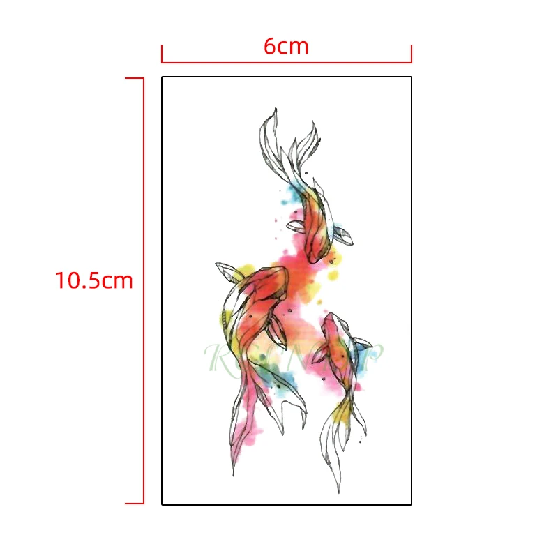 Водостойкая Временная тату-наклейка, рыба, акварель, дизайн флэш-та...