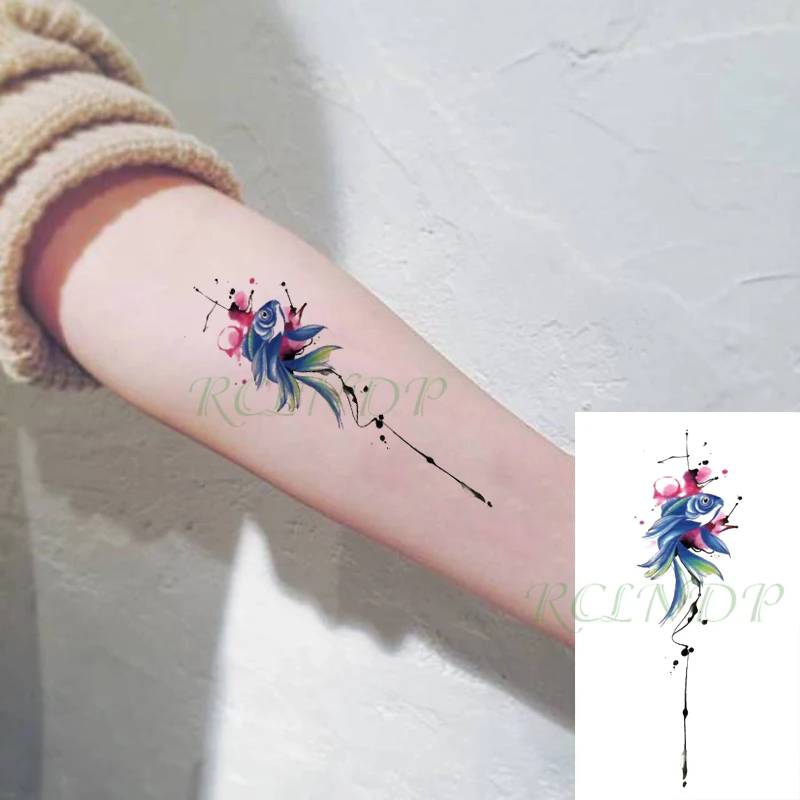Водостойкая Временная тату-наклейка, рыба, акварель, дизайн флэш-та...
