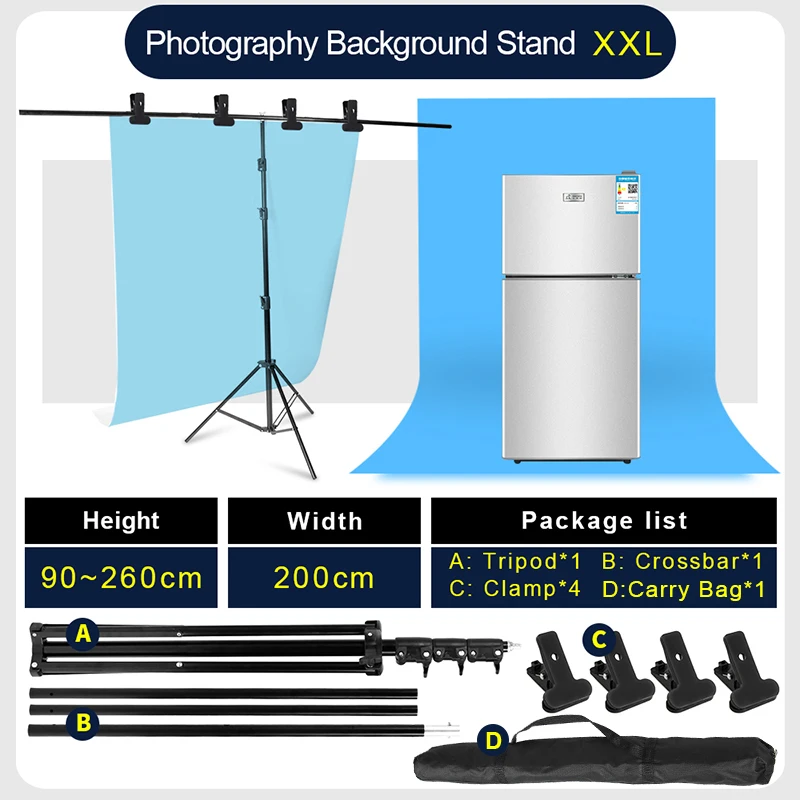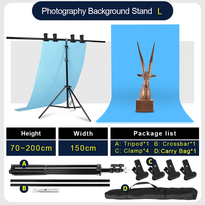 Фотофоны t-образной формы, фоторамки, подставки, поддерживающие системы, подставки с сумкой, зажимы для фотостудии, несколько размеров