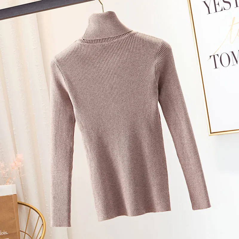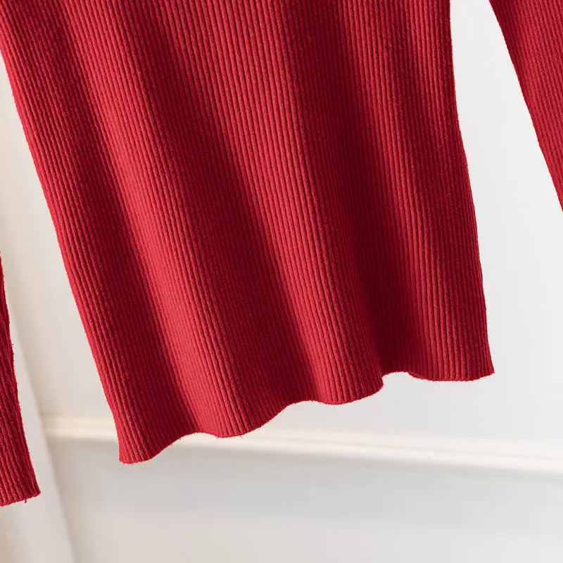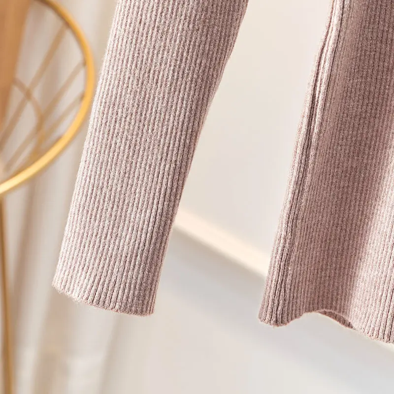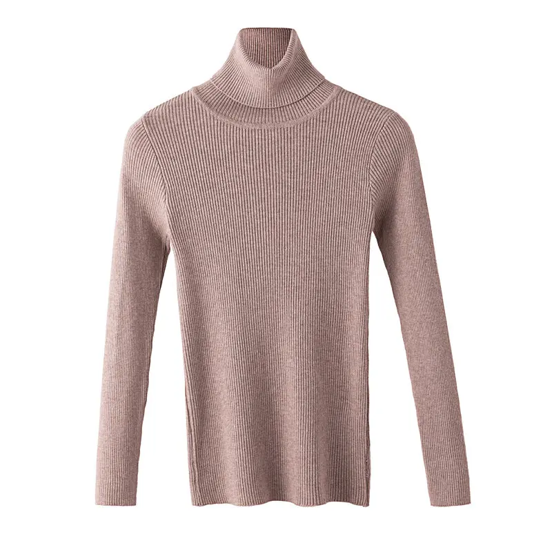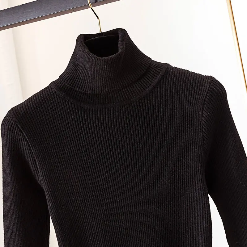 Свитер женский трикотажный, однотонный, тонкий, с высоким воротом, Осень-зима 2020