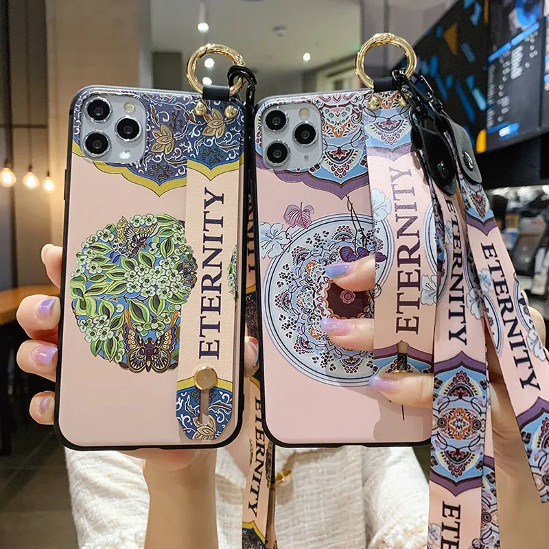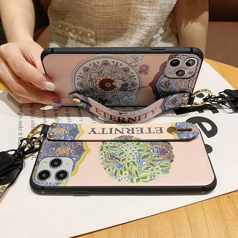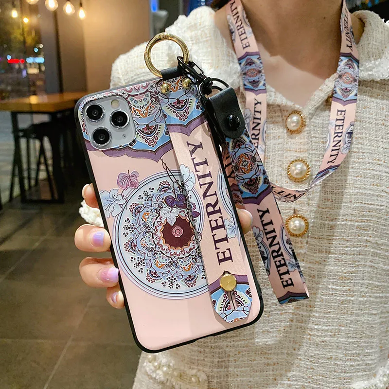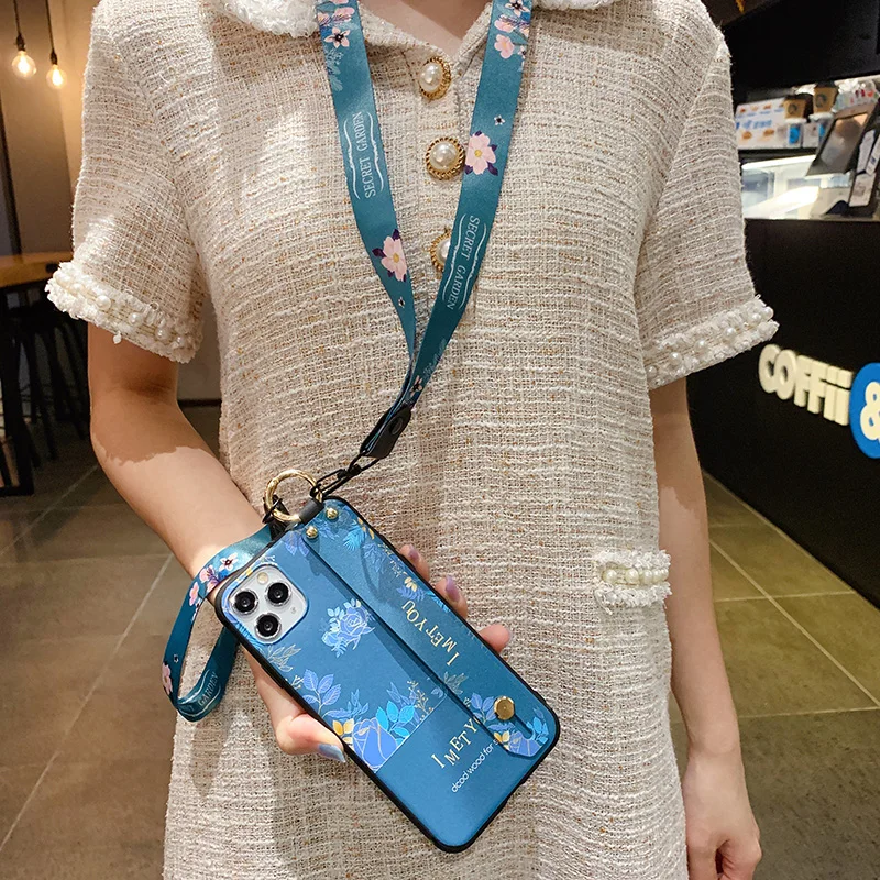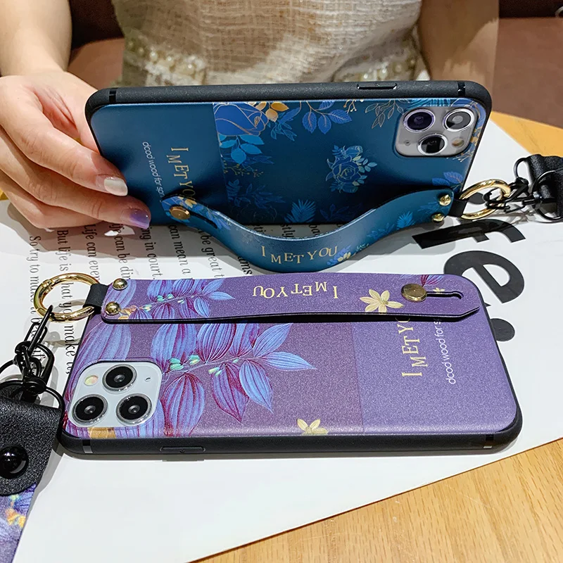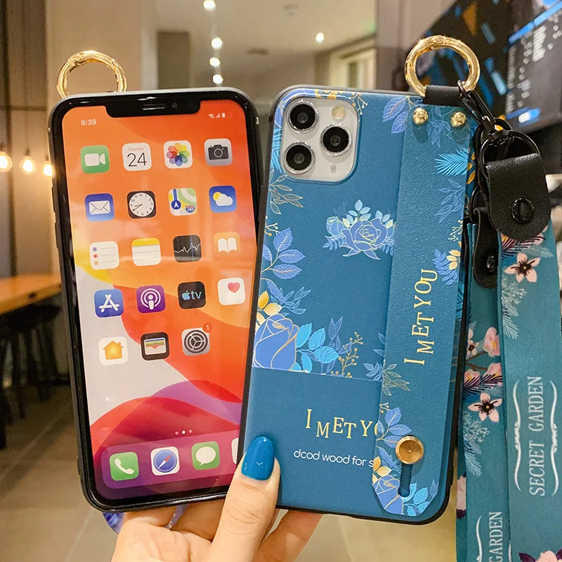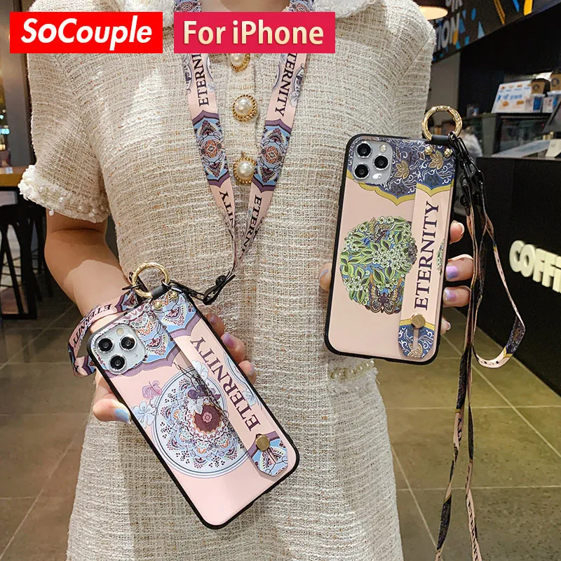 Чехол SoCouple для телефона iphone 11 12 13 Pro XR X Xs Max 7 8 plus SE, мягкий ТПУ чехол на шею, ремешок на запястье, ремешок, цветочный чехол