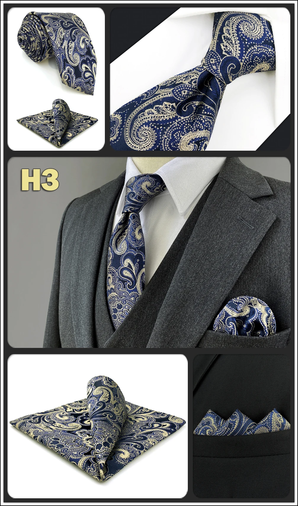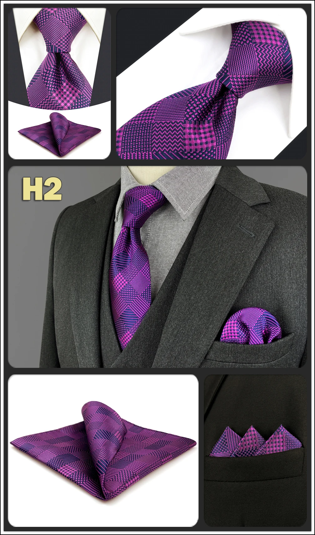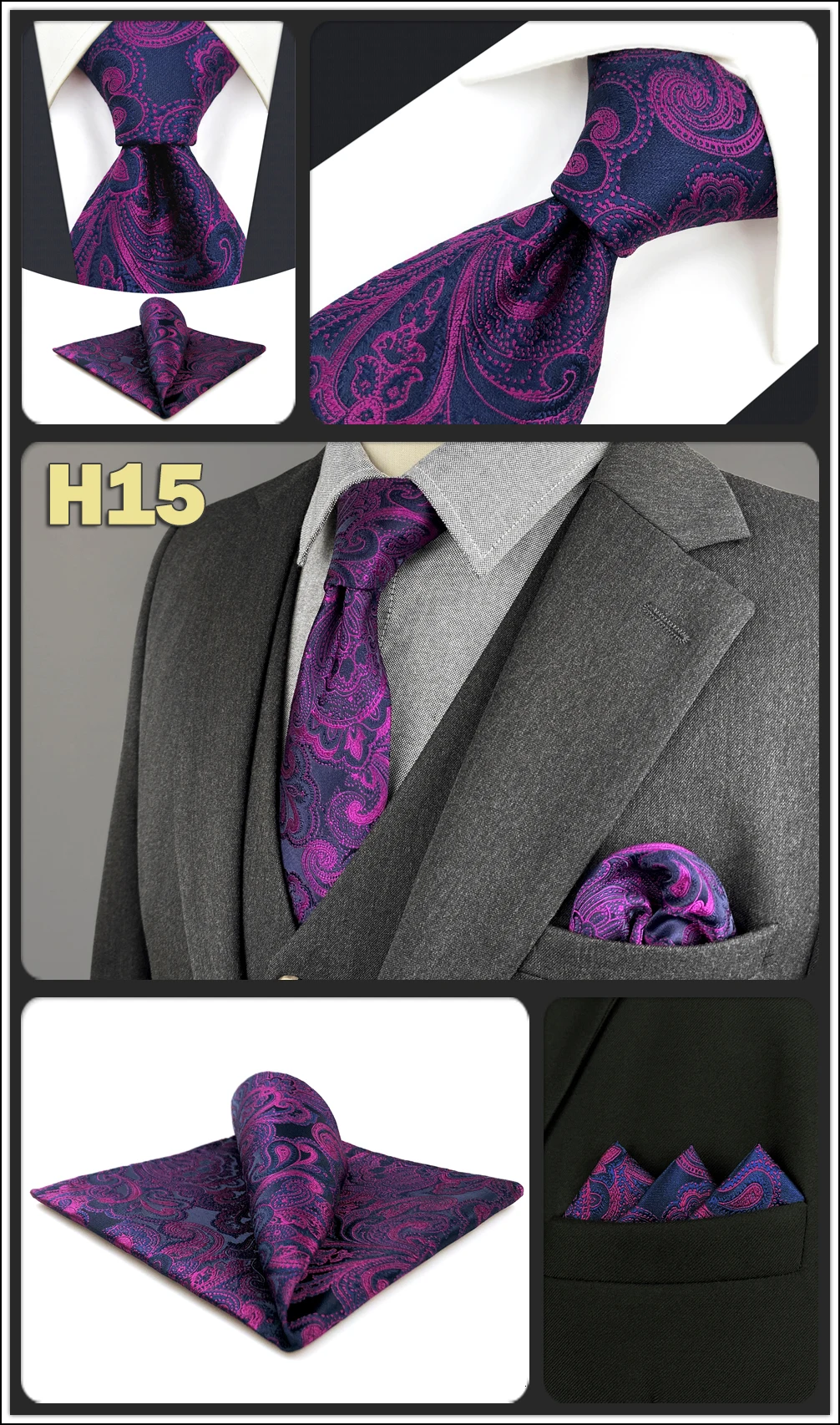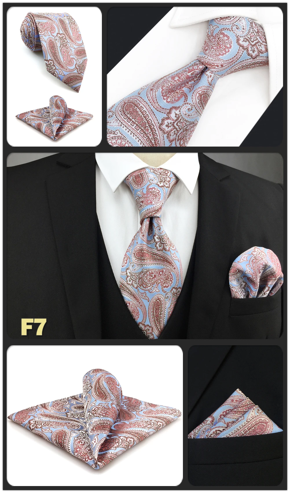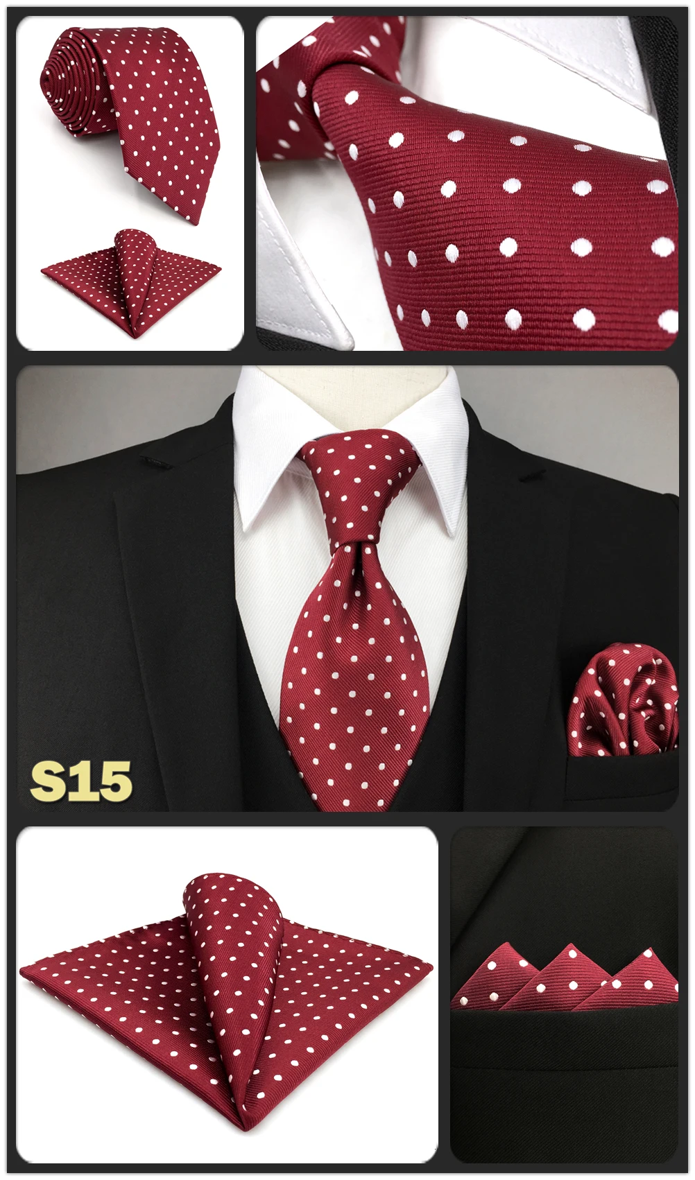 Красочный роскошный галстук для мужчин, длина 63 дюйма, 160 см, галстук и Карманный платок, красный, серебристый, Пейсли, в горошек, Шелковый, свадебный подарок, Рождество