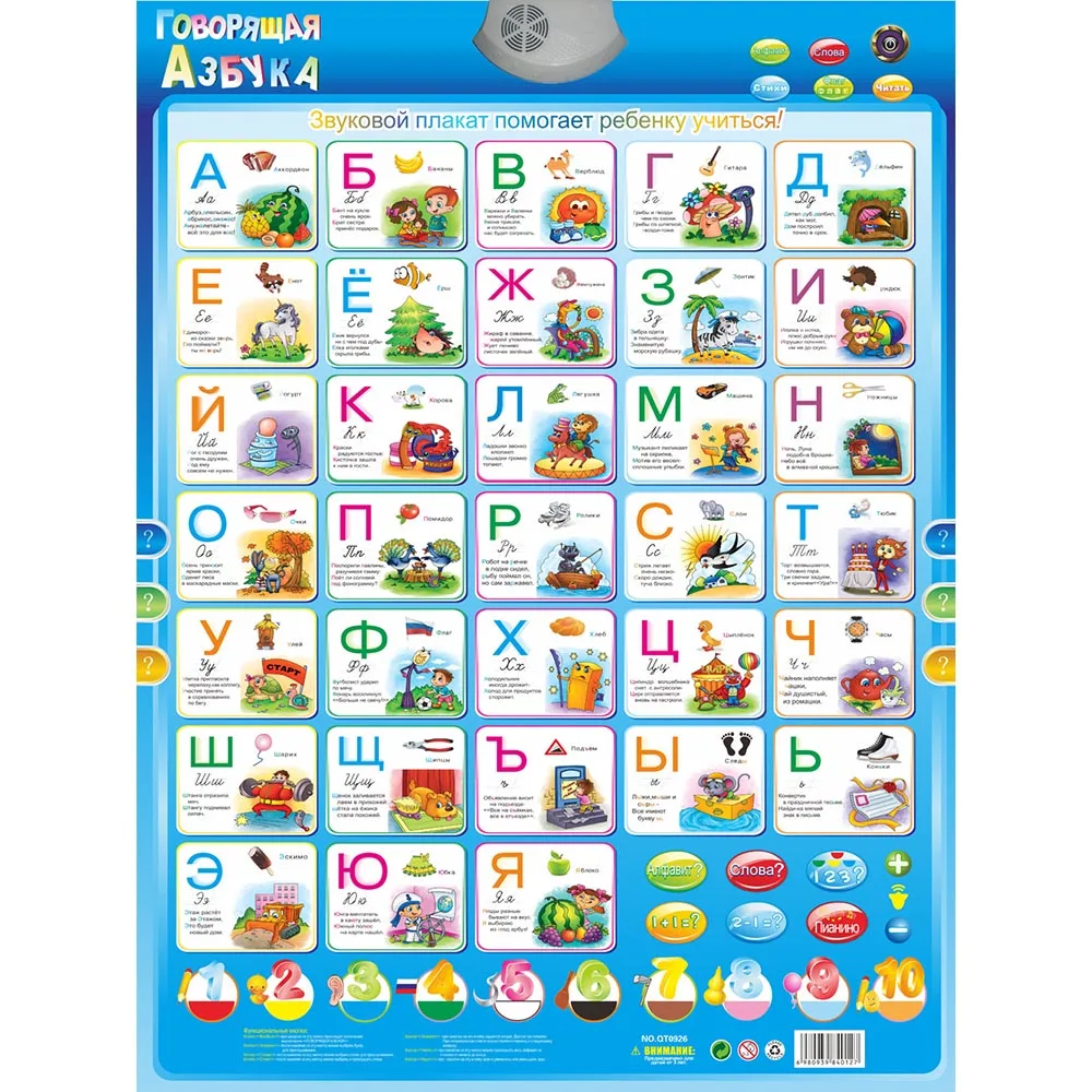 Обучающая блокнотная схема ABC, говорящий постер с русской музыкой ...