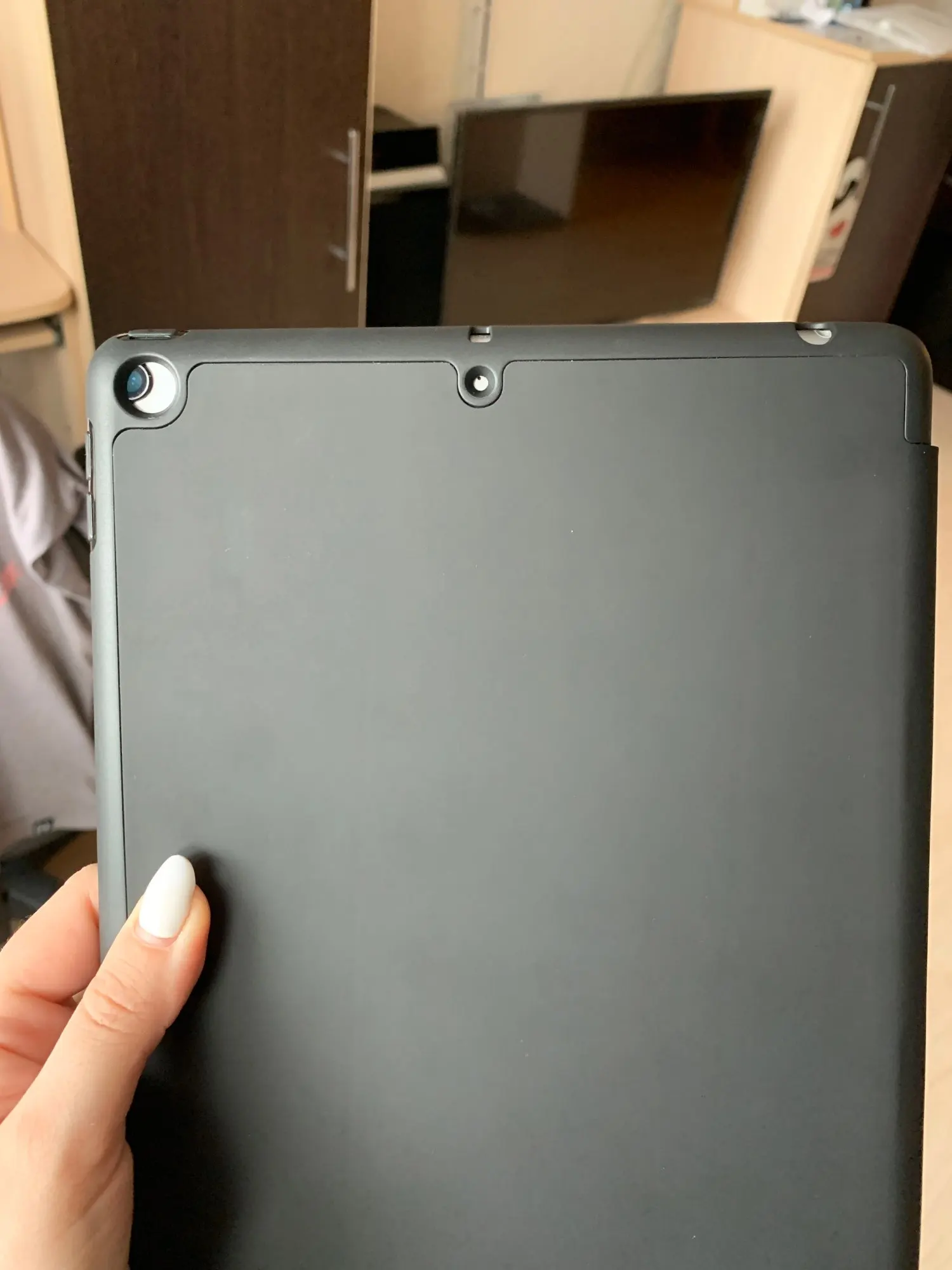 Заказывала из России, пришло быстро, хоть и обещали 4-6, но в Калининград пришел 9, материал приятный, матовый , но будет быстро пачкаться ( пока делала фото положила на стол, он был немного пыльный и на фото 3 видно у камеры следы пыли) . При открывании крышки Айпад загорается, крышка твердая , выдерживает вес Айпада, поэтому можно спокойно сгибать и ставить как угодно, основной чехол прочный, Айпад сидит идеально, шанс что он выпадет очень мал. Удобная подставка под apple pencil, можно легко его достать , все кнопки на чехле совпадают с кнопками Айпада и отлично работают . Цвет не скажу, что ультра черный, он скорее темно-темно серый. Также чехол увесистый , товар понравился, но есть один минус, это то что будет быстро пачкаться