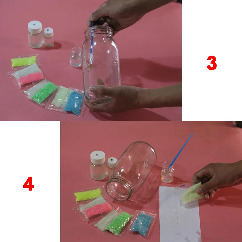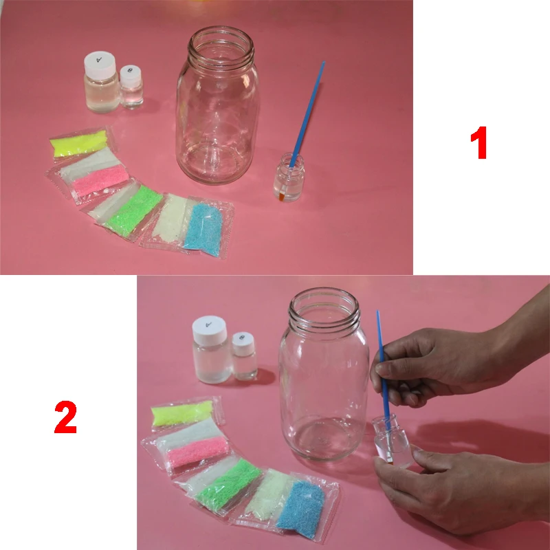 О: сначала Положите клей в прозрачную стеклянную бутылку (можно использовать клей-кисточку)