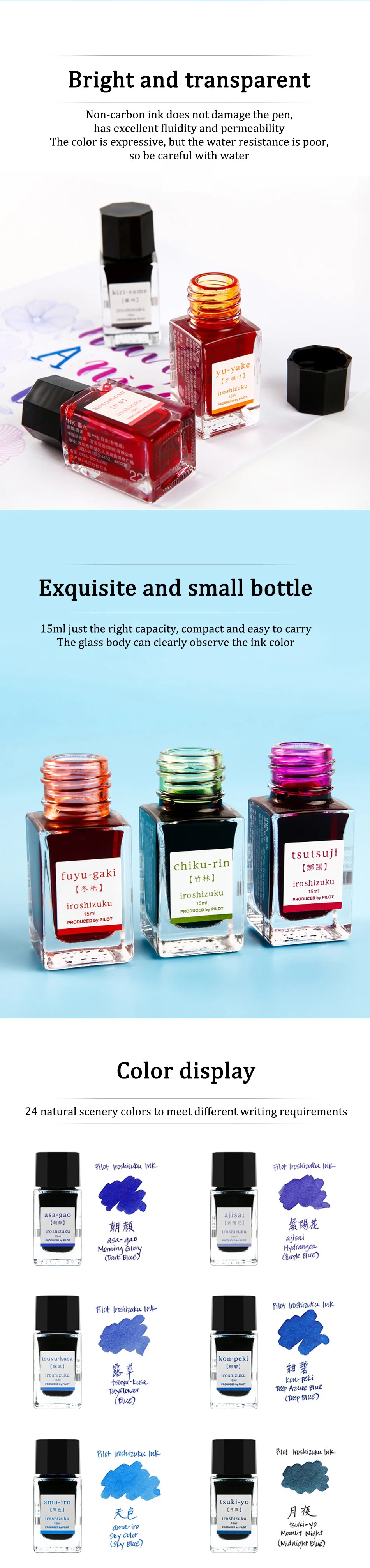 1 шт. японские цветные чернила Shizuku-15 градиентных цветов Iroshizuku студенческие 24 цвета флакон 15 мл цветные чернила для авторучки из углепластика