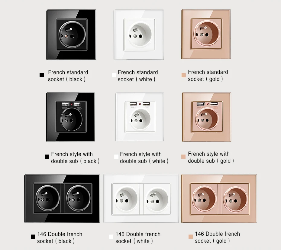 UBARO французская стандартная электрическая розетка с закаленной стеклянной панелью, домашняя розетка с USB 5 в 100 мА, настенная розетка 250-в 16 А