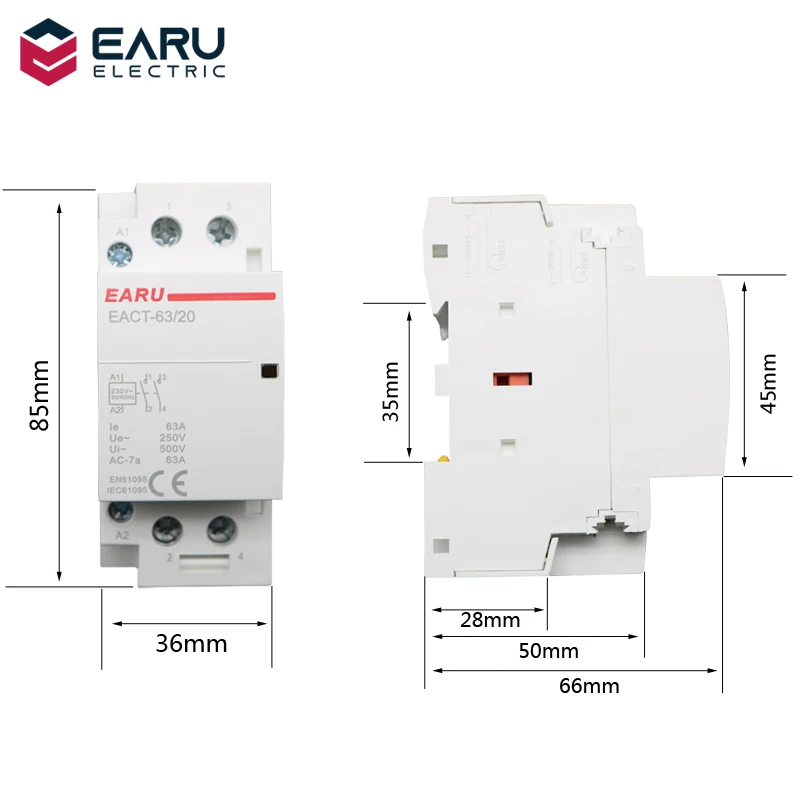 Ток: до 32 А, 40 А, 63 А, Напряжение: 220 В, AC50/60 Гц; Категория использования: AC-1, AC-7a, AC-7b; Стандарт: IEC / EN 61095