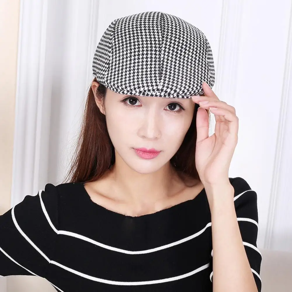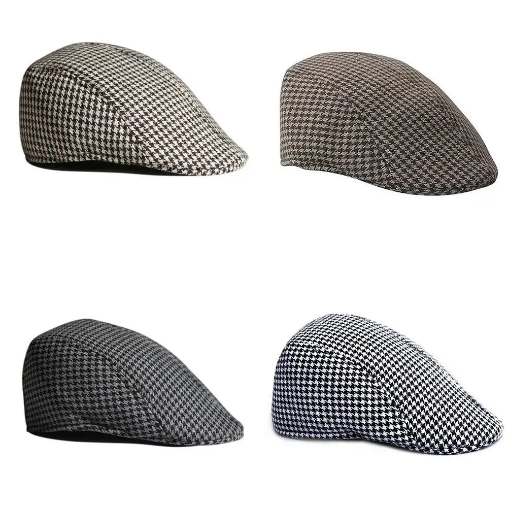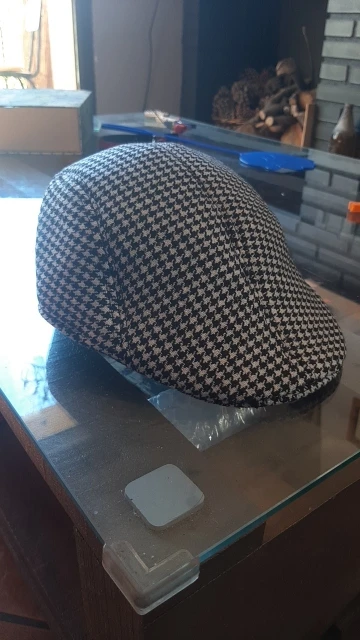 Кепка газетчика из твида с рисунком в елочку, черного и серого цветов