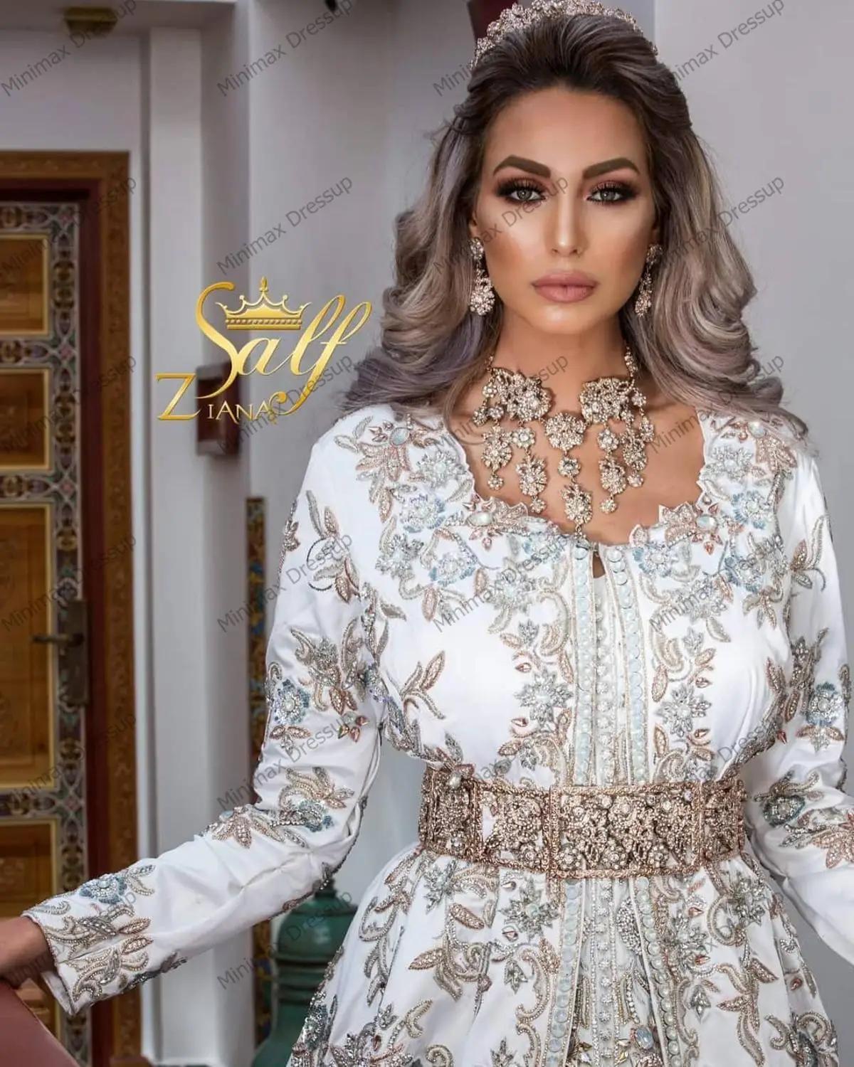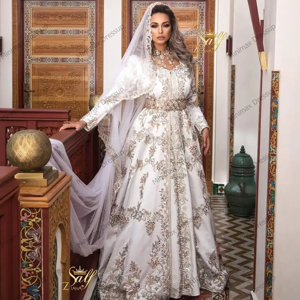 Свадебные платья с винтажной вышивкой, атласные платья с длинным рукавом и бисером, свадебное платье в арабском стиле Саудовской Аравии, индивидуальный пошив, мусульманские платья
