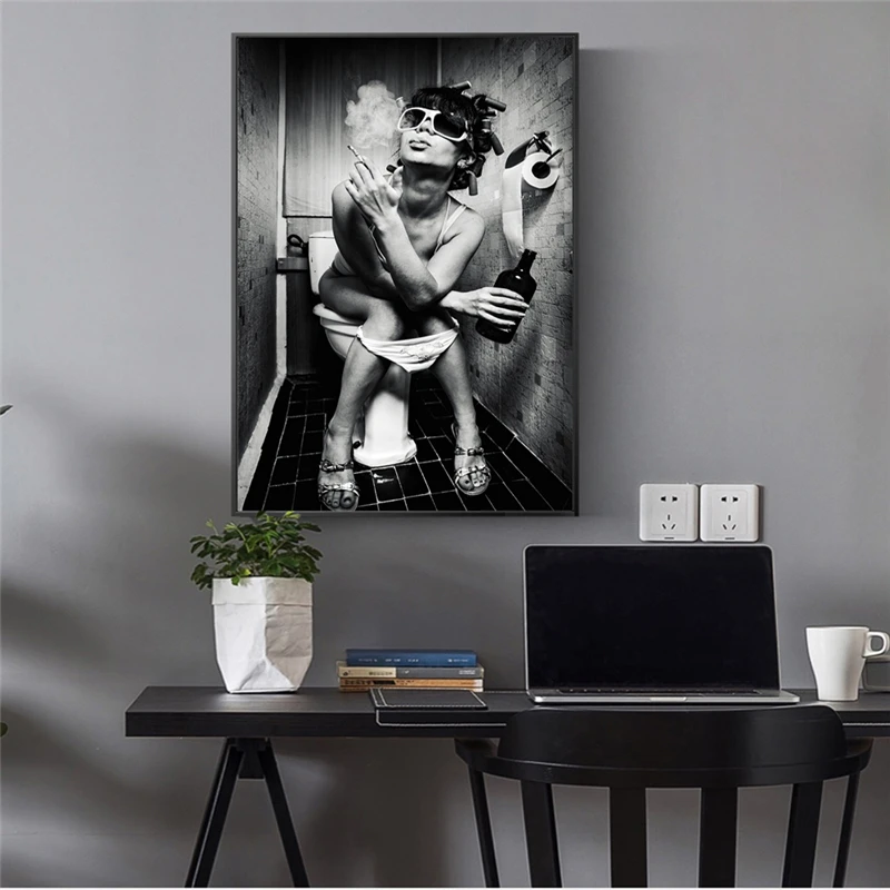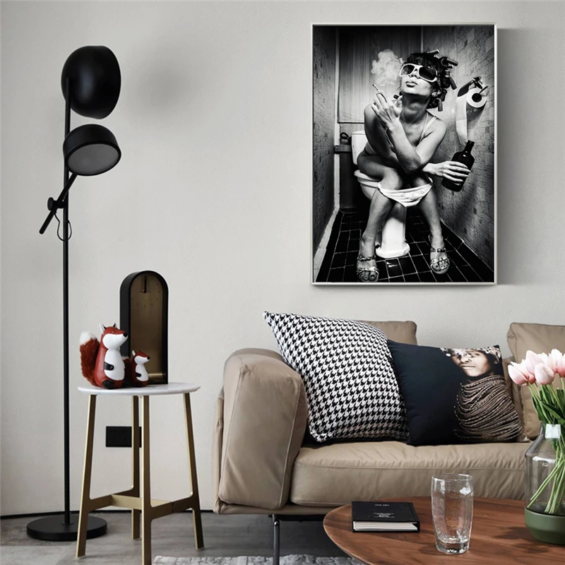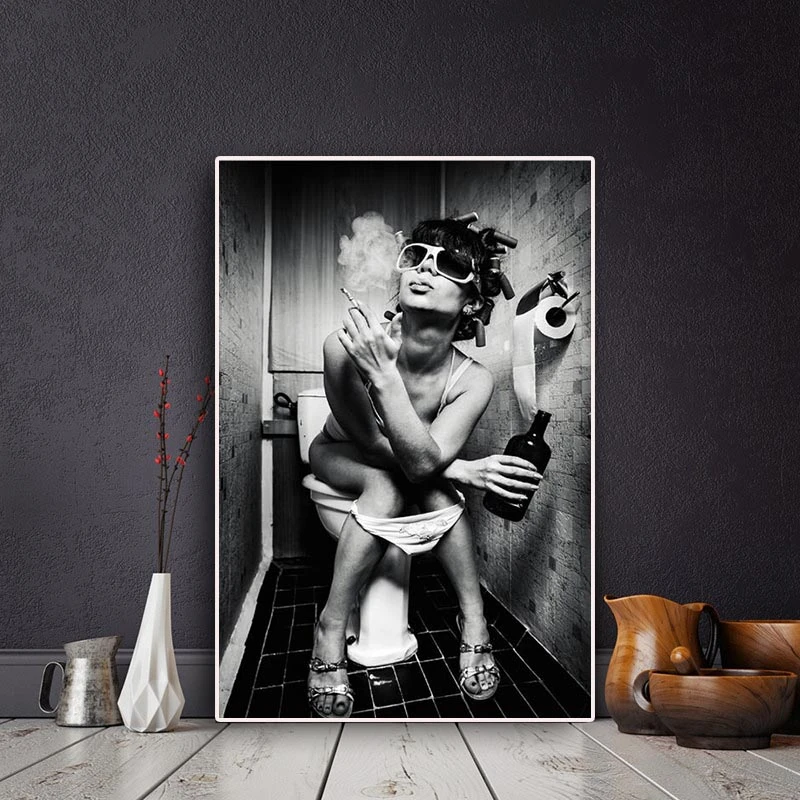 Привлекательные женские постеры на стену в туалете и принт для женщин с сигаретой поп-арт на холсте Черно-белые канделябры принты для домашнего декора стен